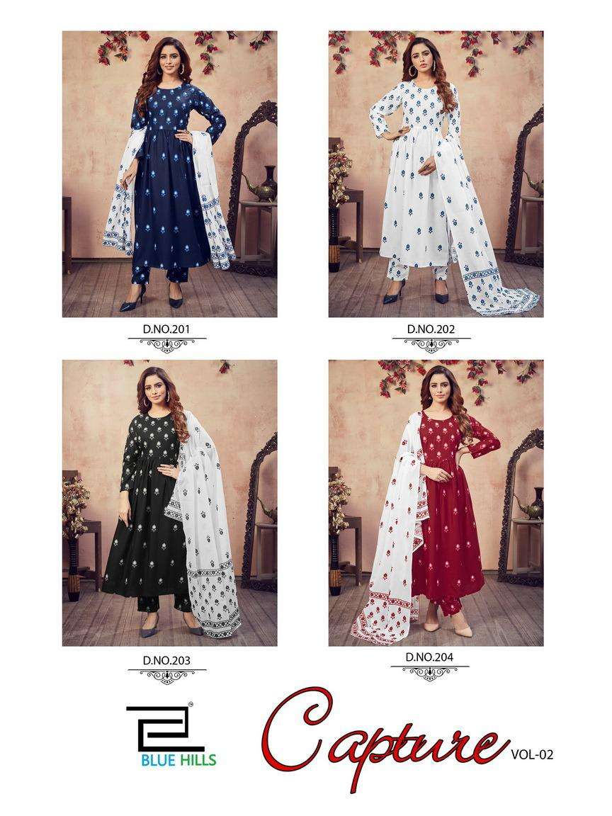 We are back with our new concept Brand name - BLUE HILLS Catalogue name *CAPTURE vol -2 *Fabric : HEAVY RAYON top and bottom *Size:- *L(40) XL( 42" ) XXL( 44" ) Top length 50