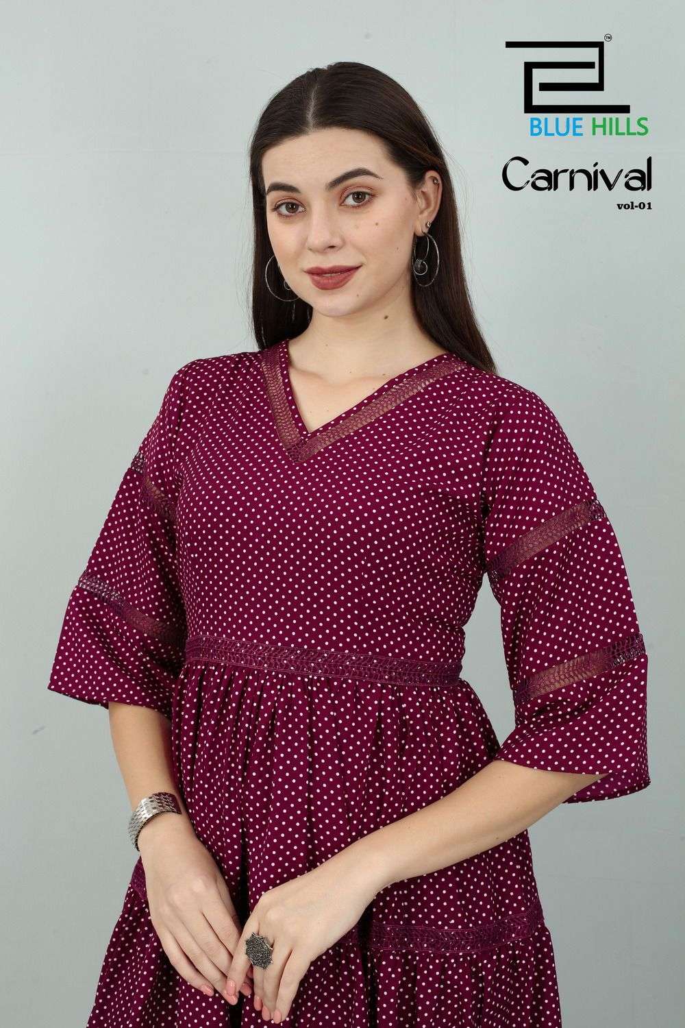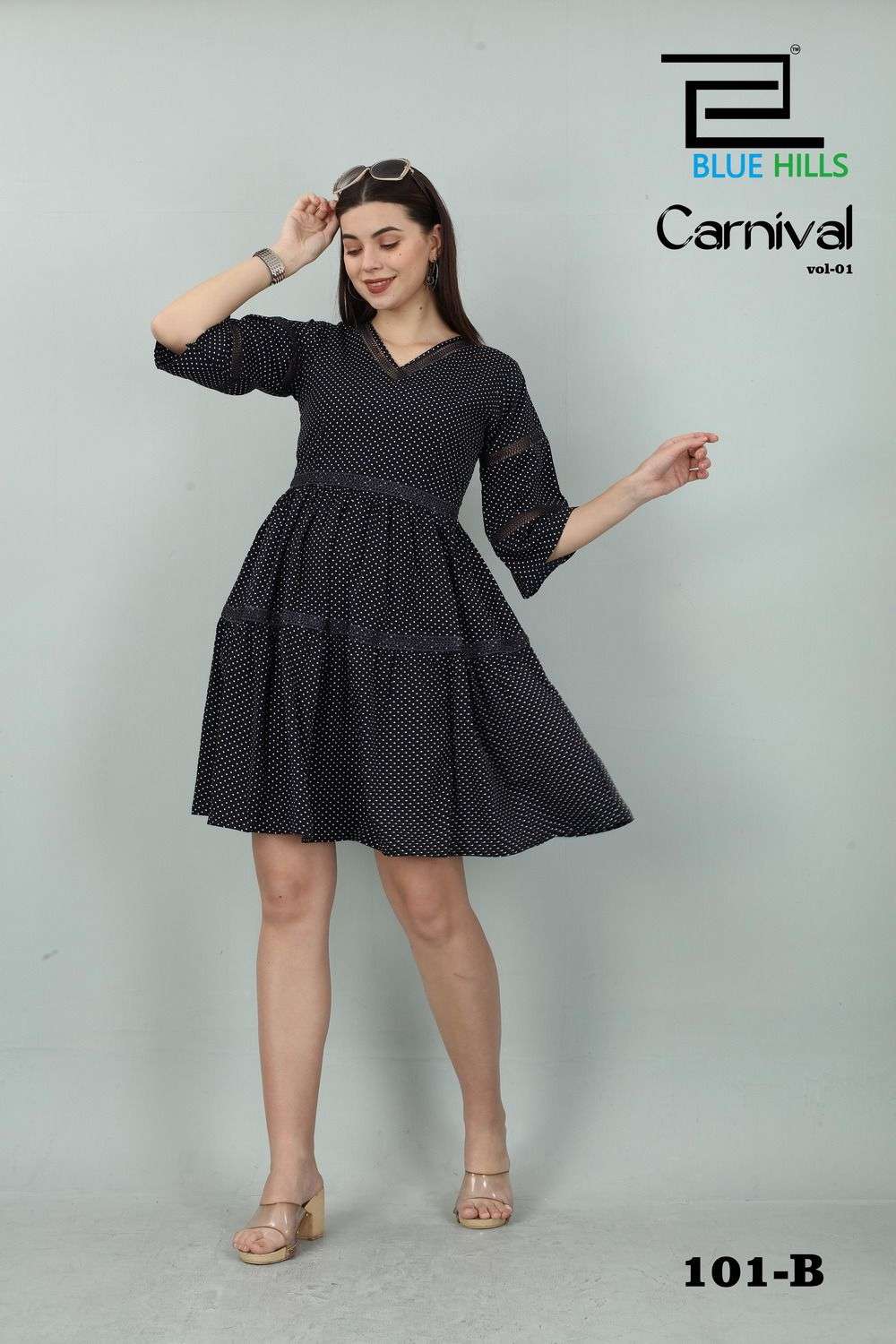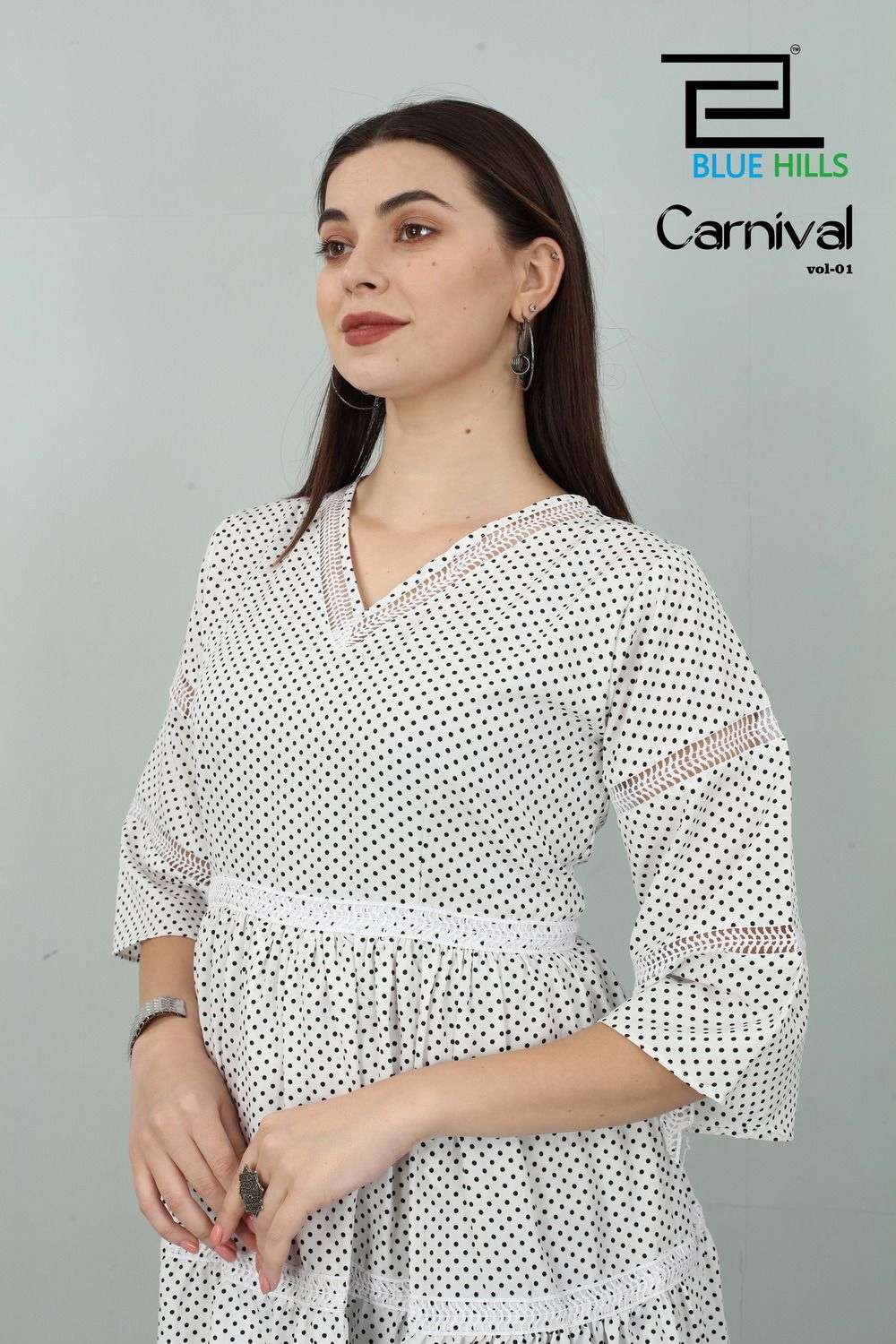 blue hills carnival vol 1 readymade polyester short fancy kurtis