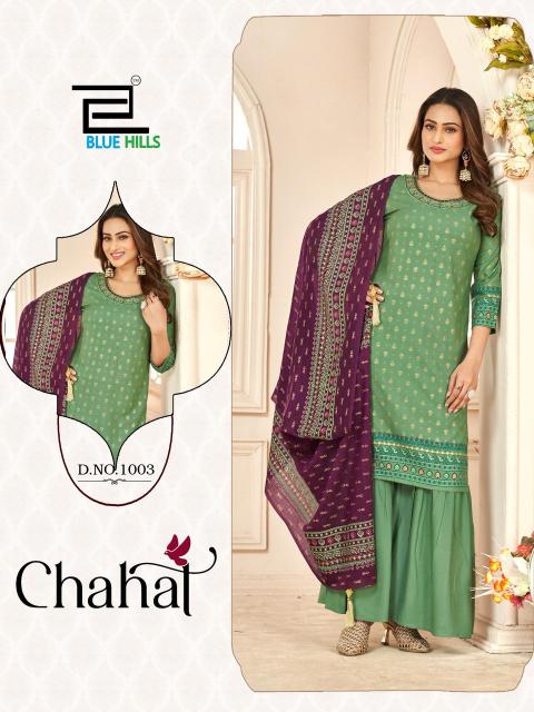 👑BLUE HILLS👑 👗Catalogue Name- Concept - 3pcs 👗Fabrics Top :- 14kg Rayon with foil print Sharara:- Rayon 14kg Dupatta:- Chanderi foil print with accessories 🎗Size :- M L XL XXL XXXL ☣Designs :- 8 |