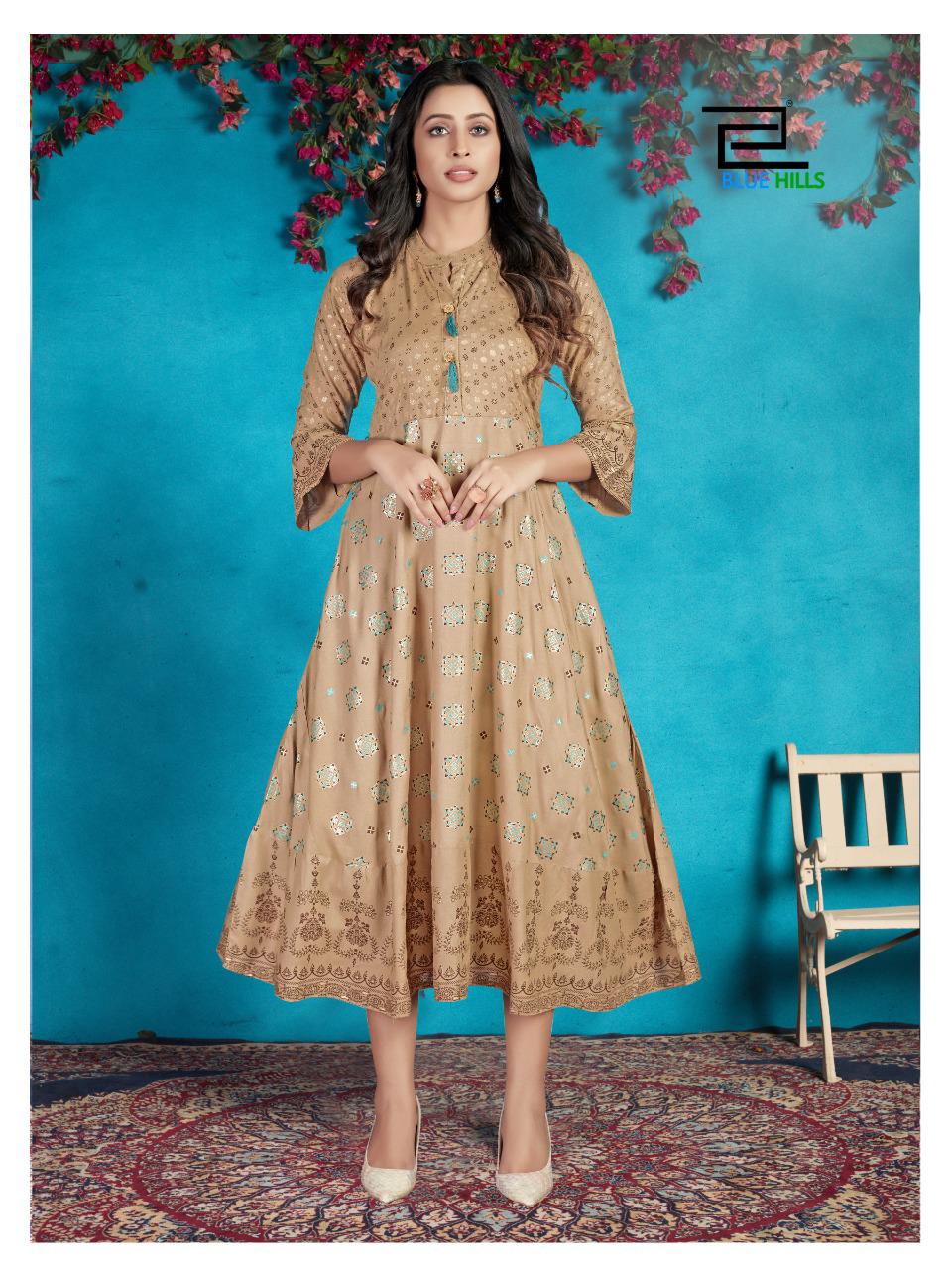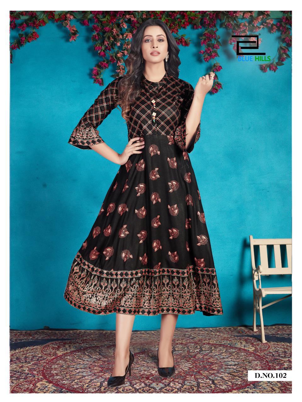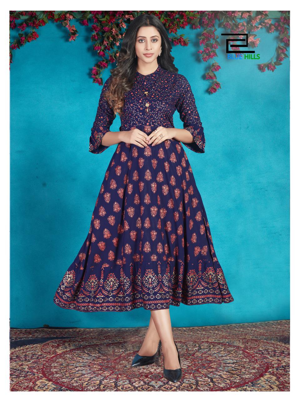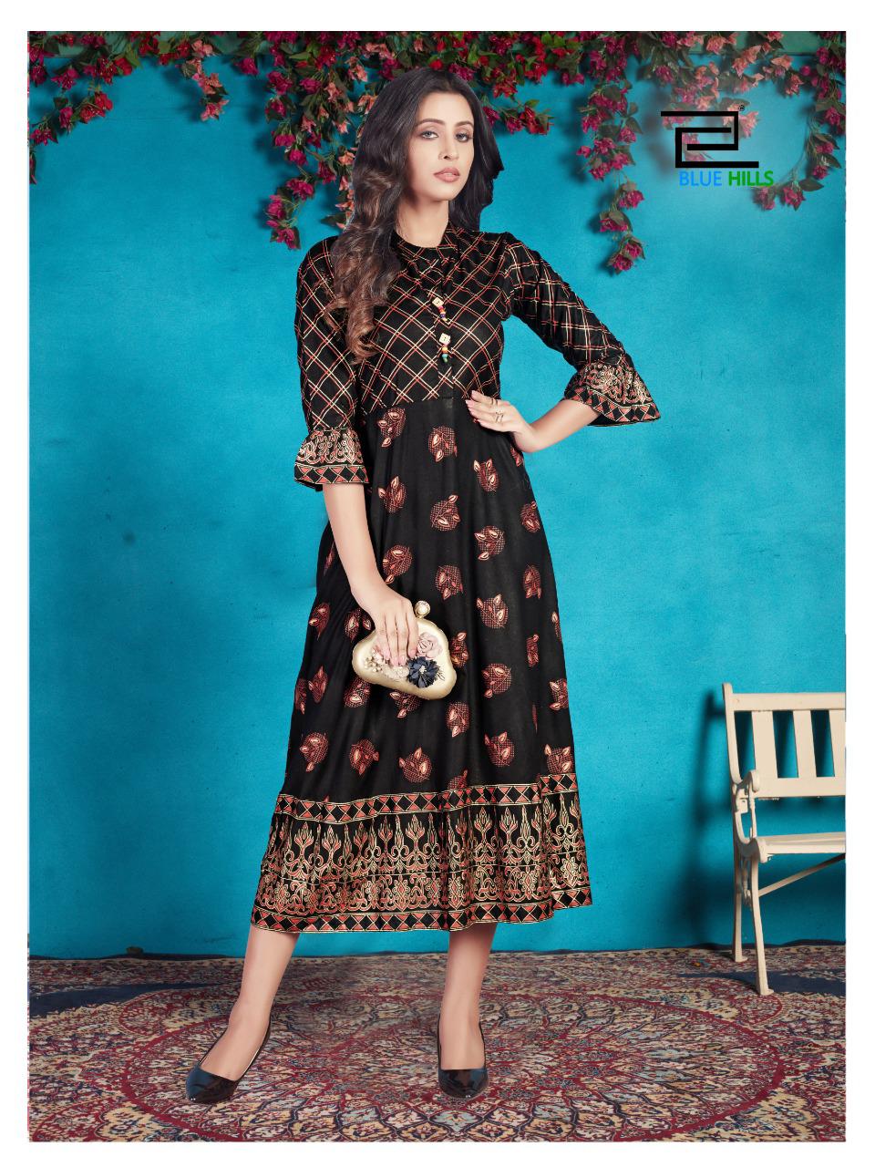 Blue Hills Classy Rayon Gold Print Comfort Wear Kurti For Girls