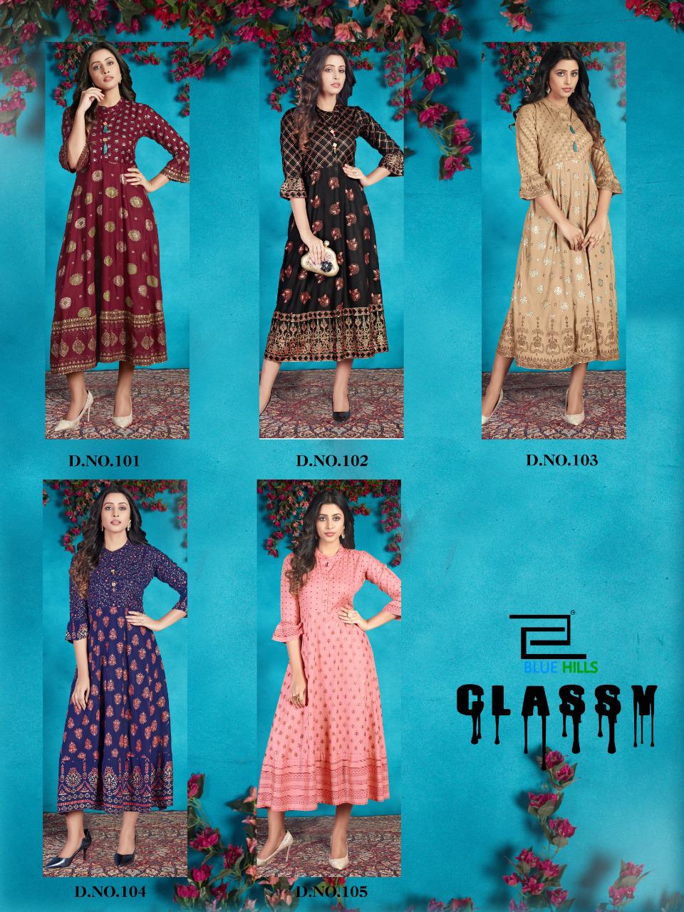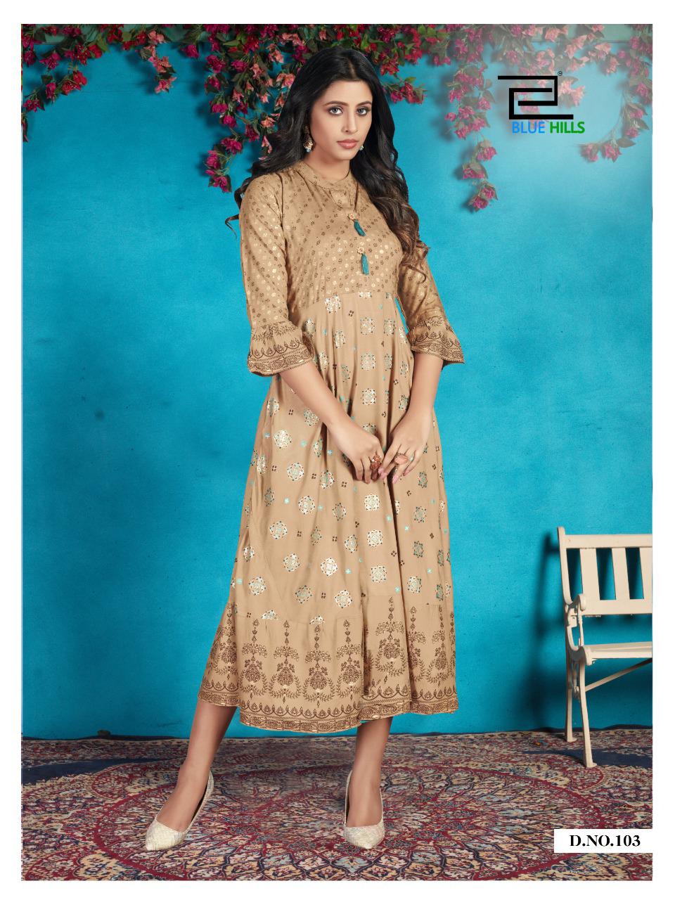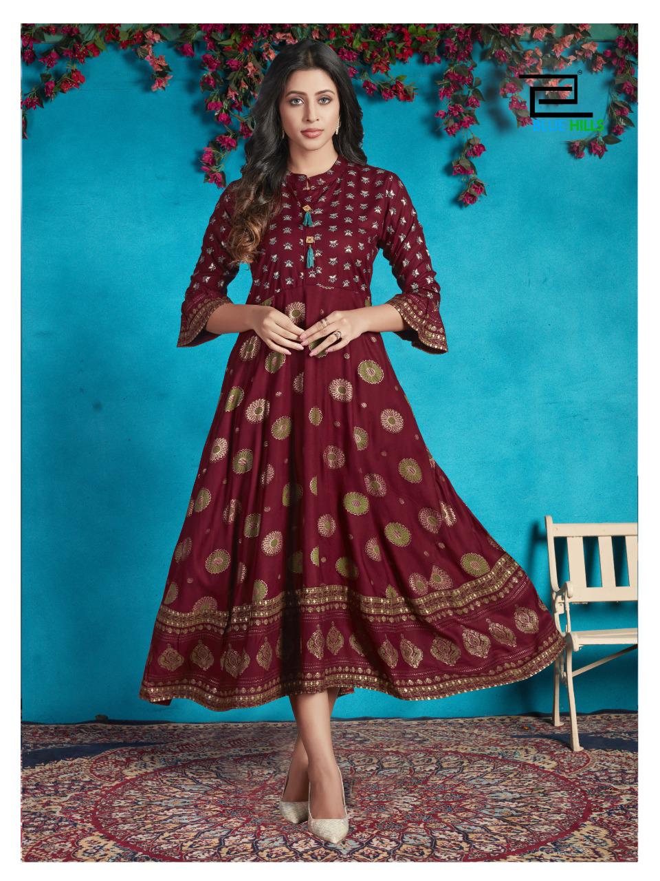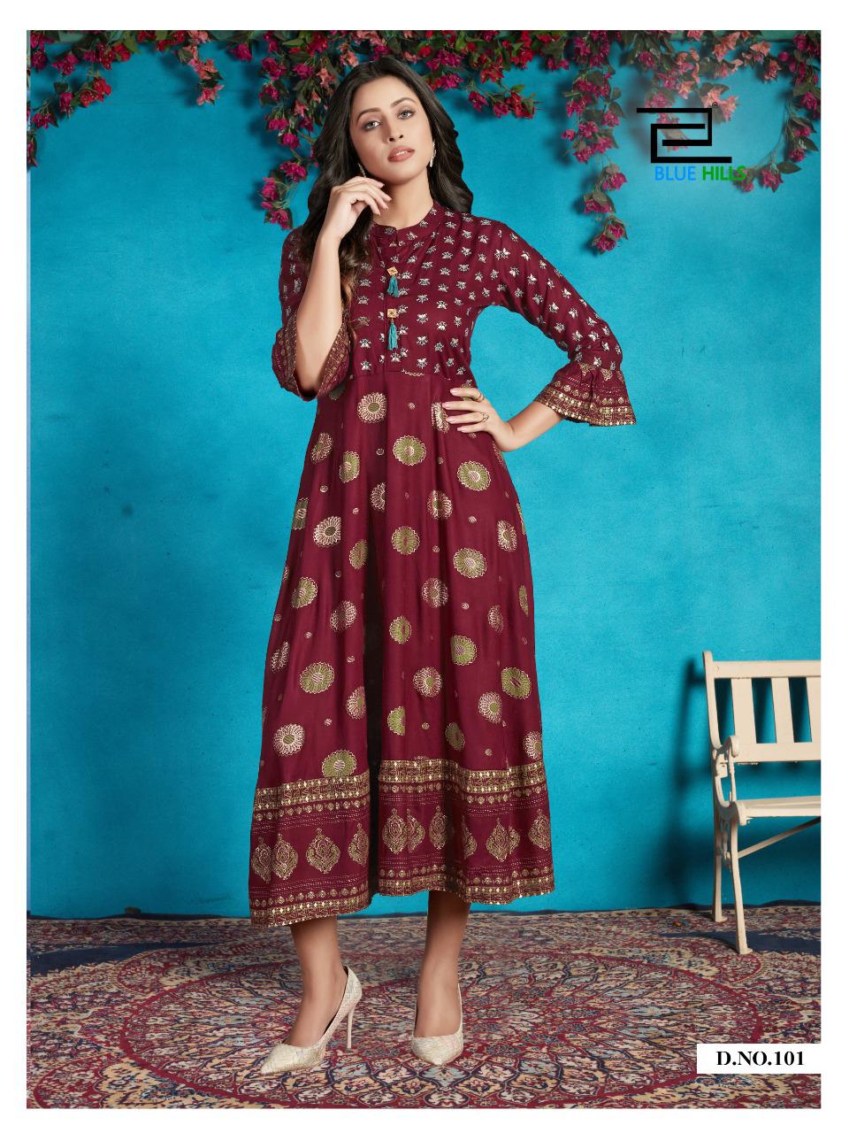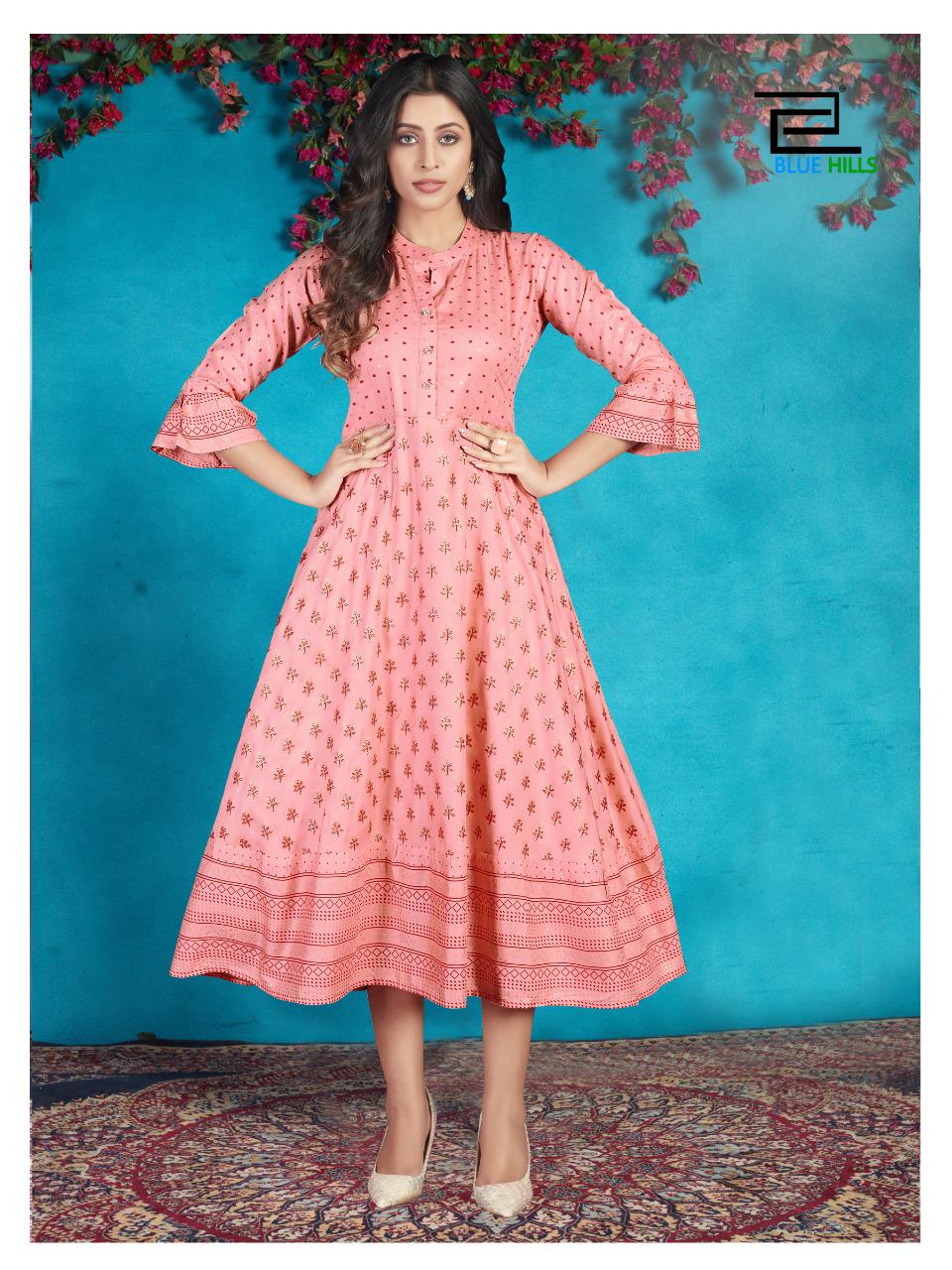 Blue Hills Classy Rayon Gold Print Comfort Wear Kurti For Girls