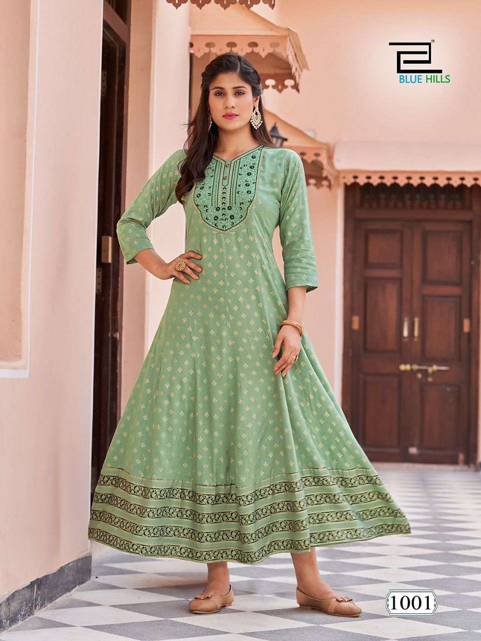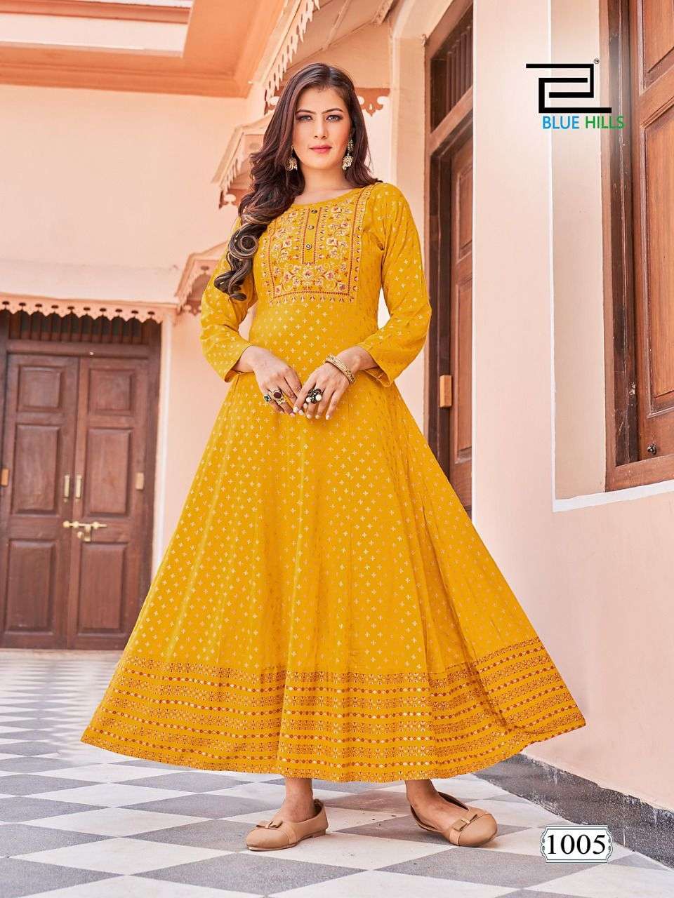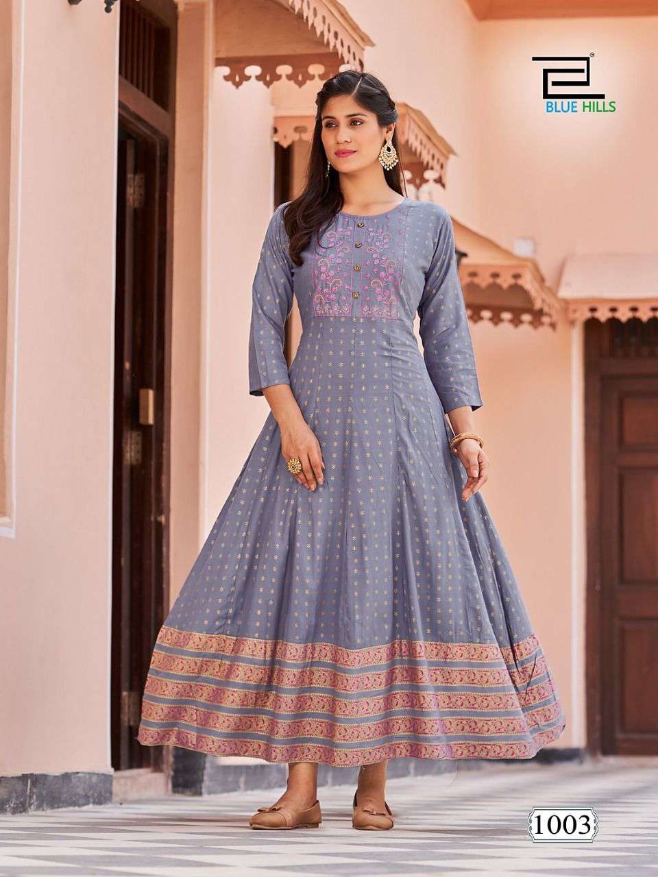 blue hills encounter rayon foil printed embroidery big sizes anarkali gowns