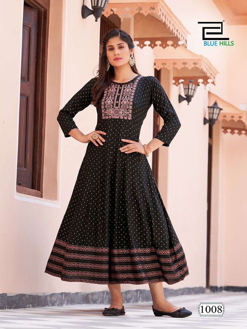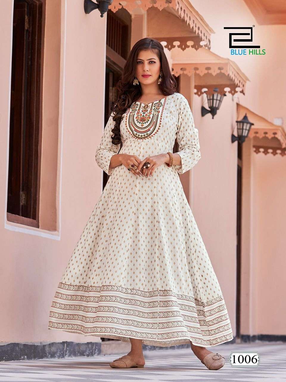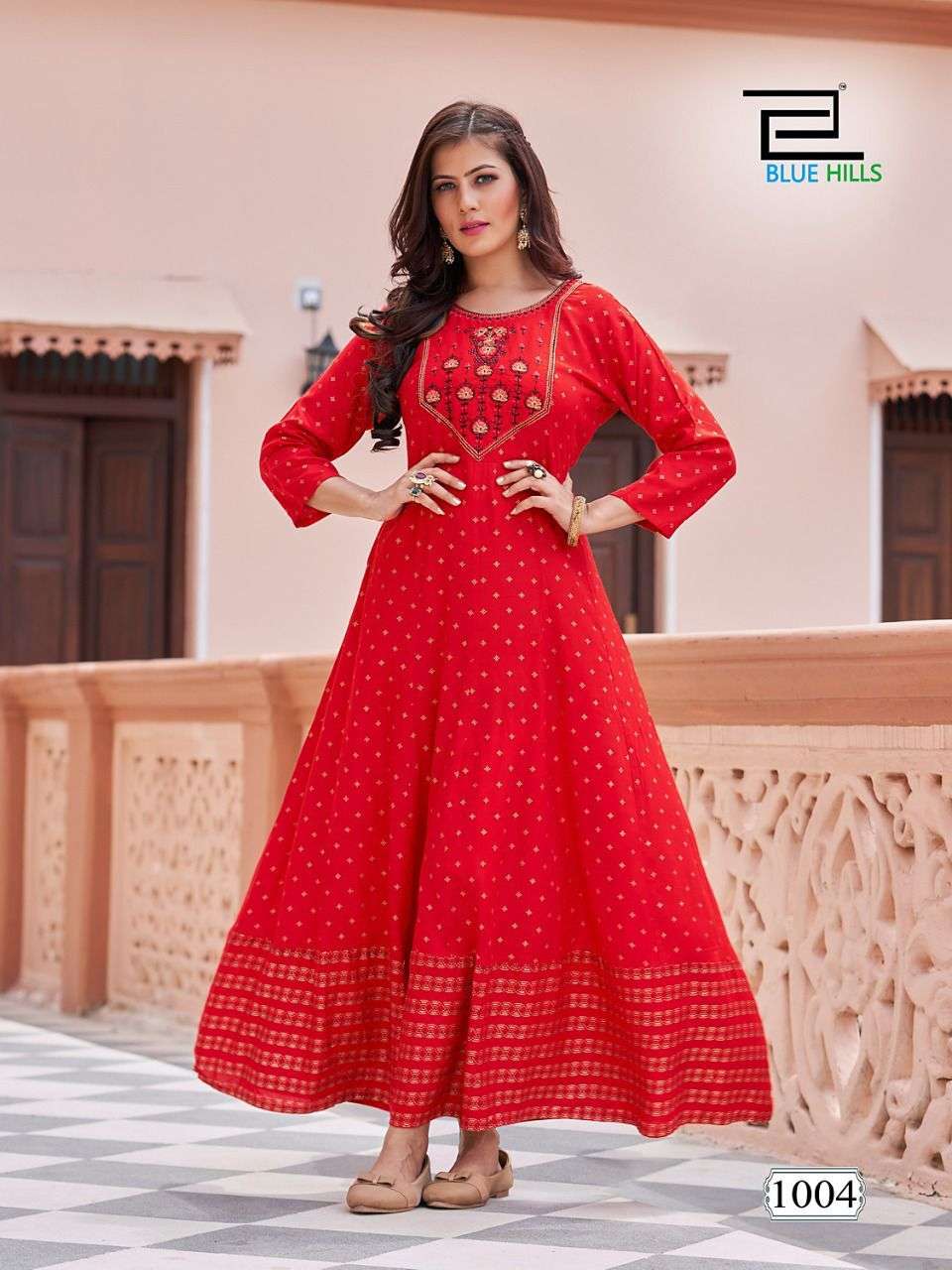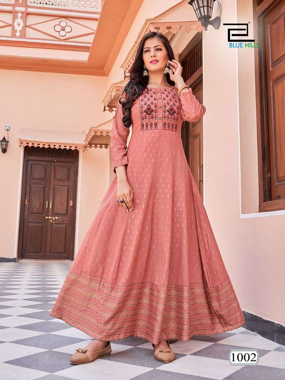blue hills encounter rayon foil printed embroidery big sizes anarkali gowns