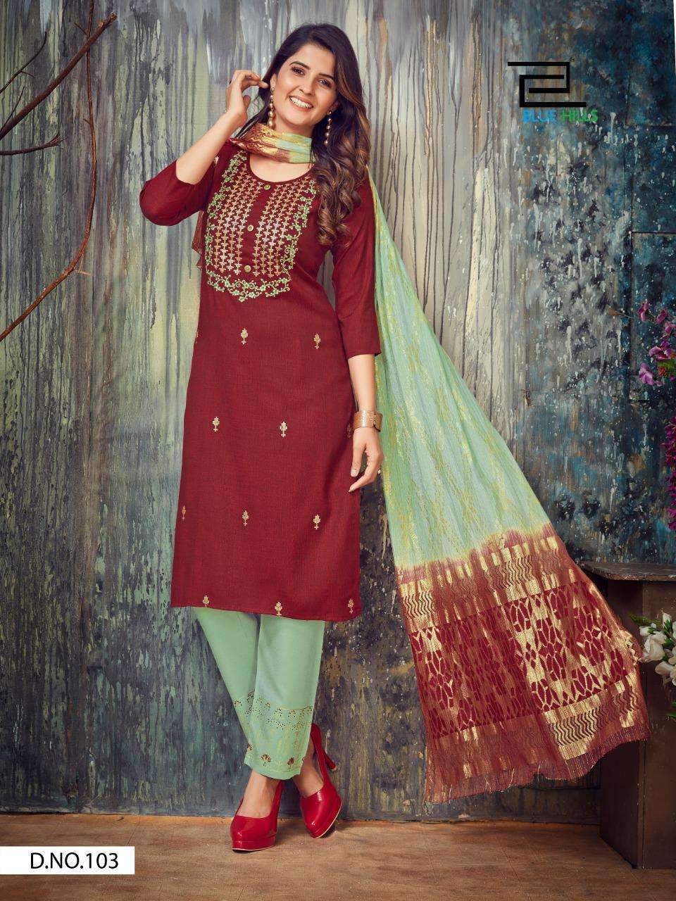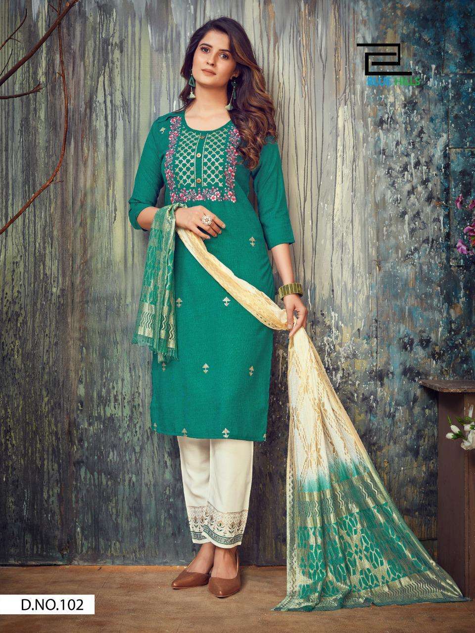 Blue Hills Falak Rayon Readymade Fancy Suits