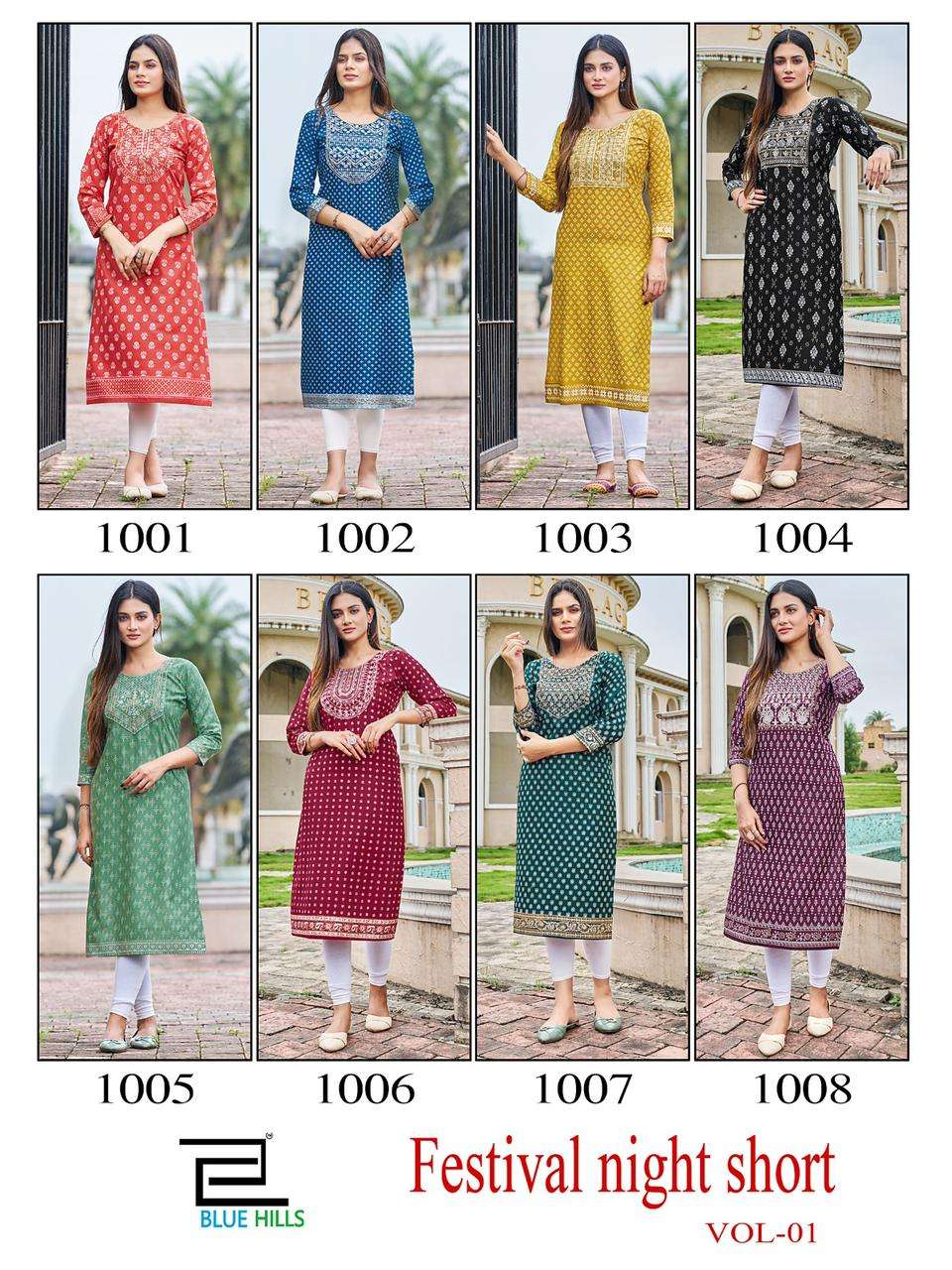 blue hills festival night short vol 1 fancy rayon stitch kurtis in plus sizes