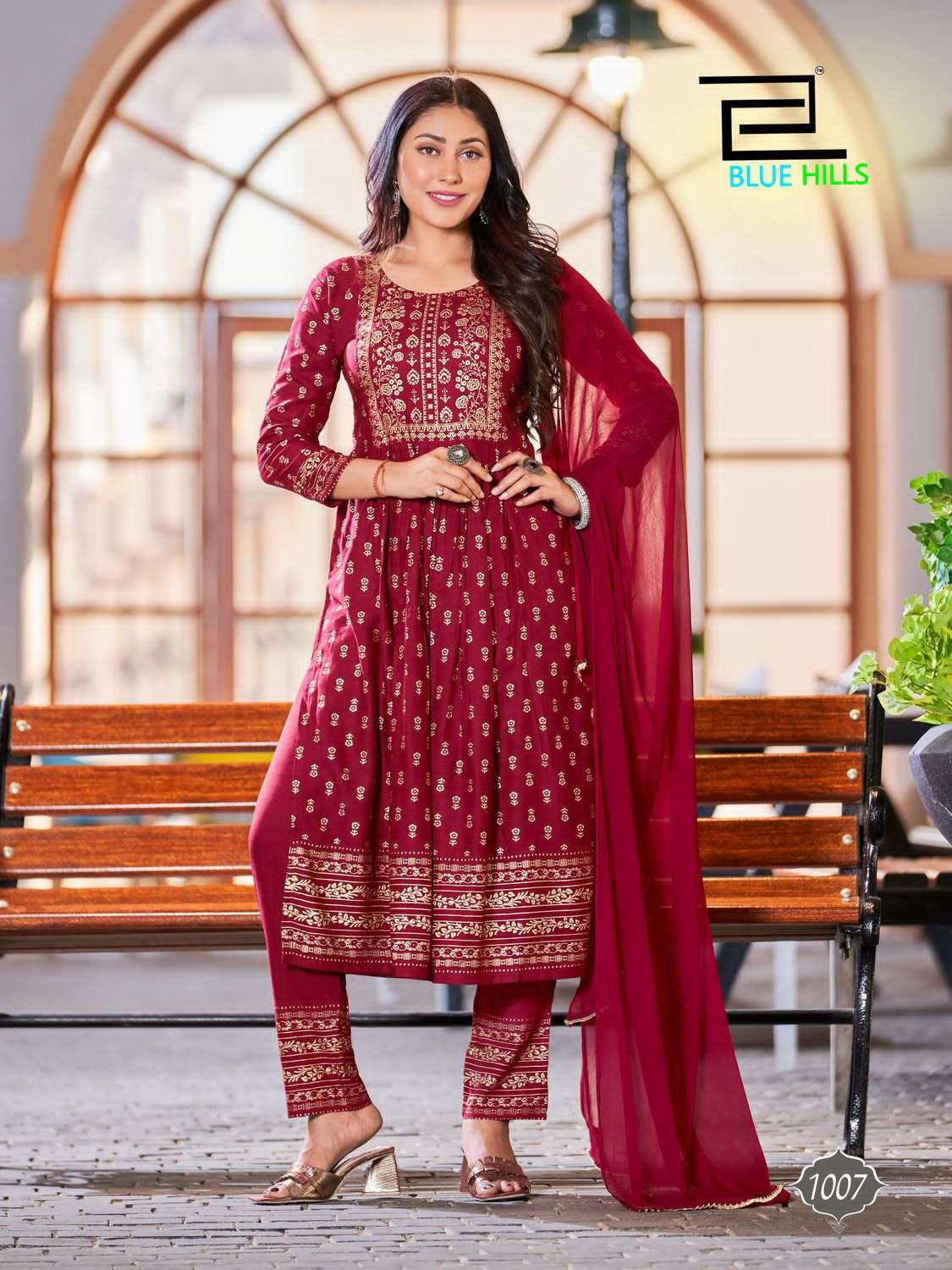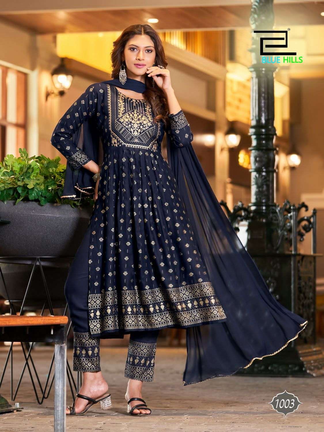 blue hills festival night vol 7 readymade foli print nayra cut kurti with pant and dupatta