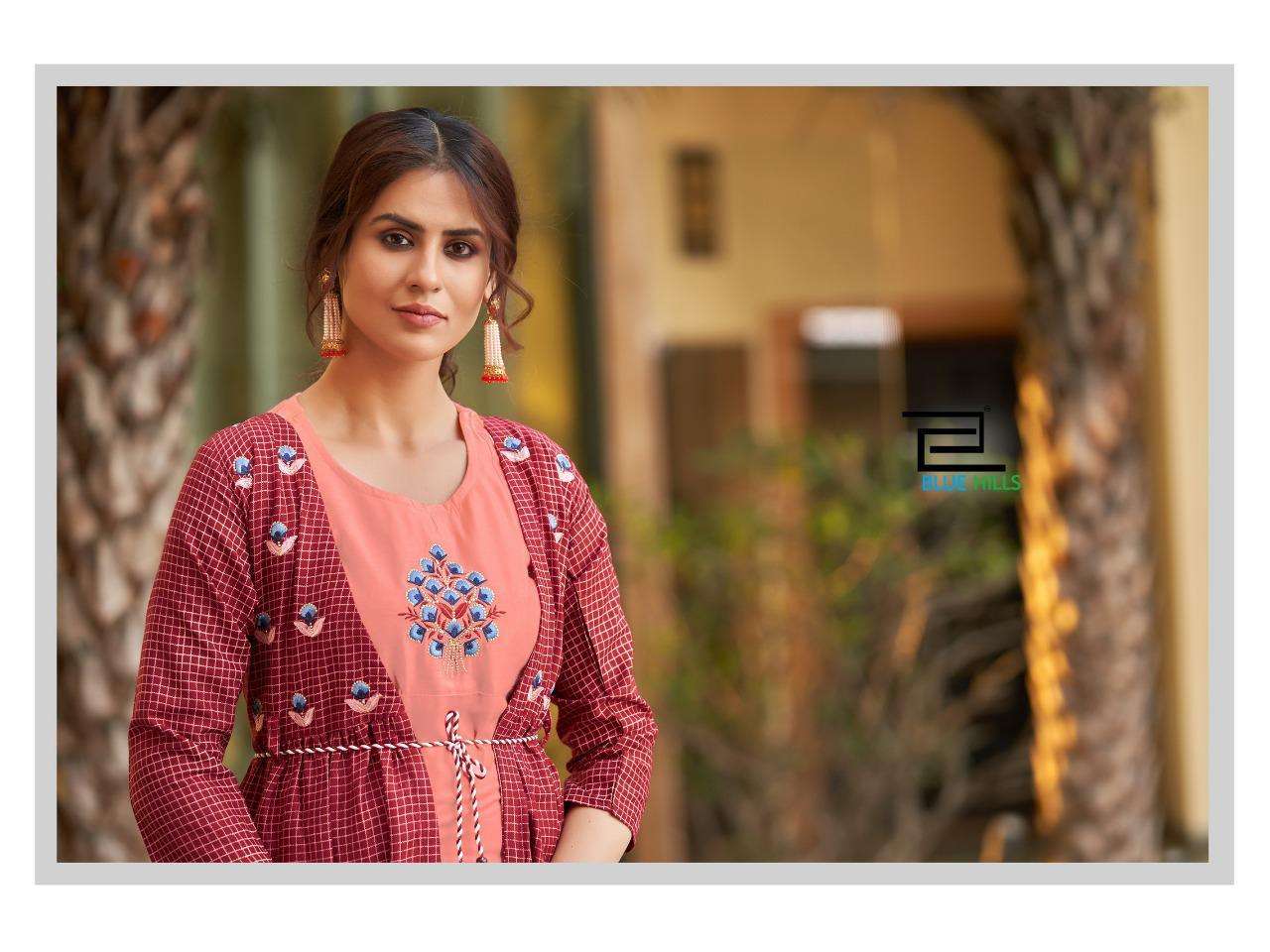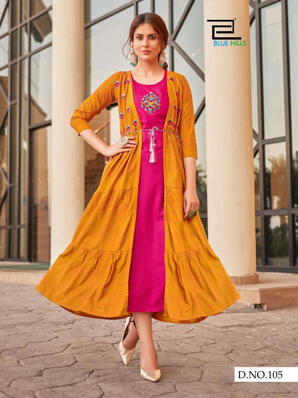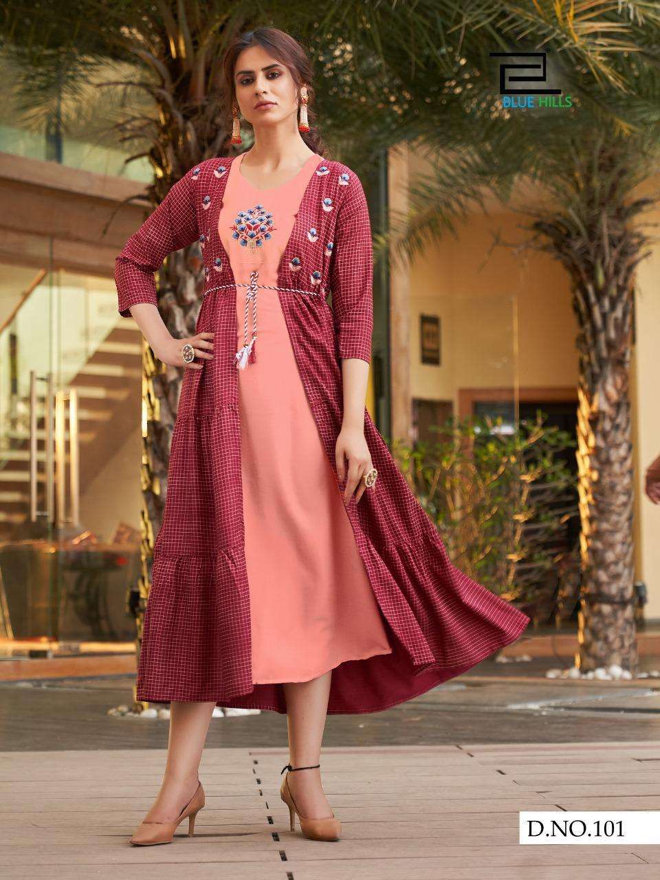 blue hills festival style rayon long sleeveless inner with long jacket concept