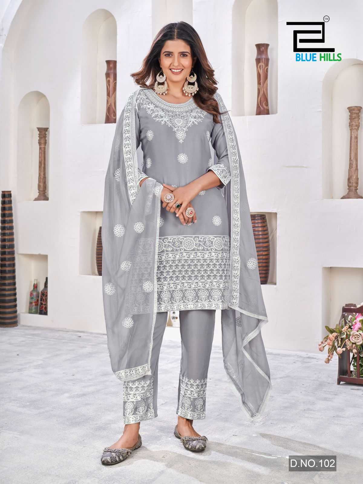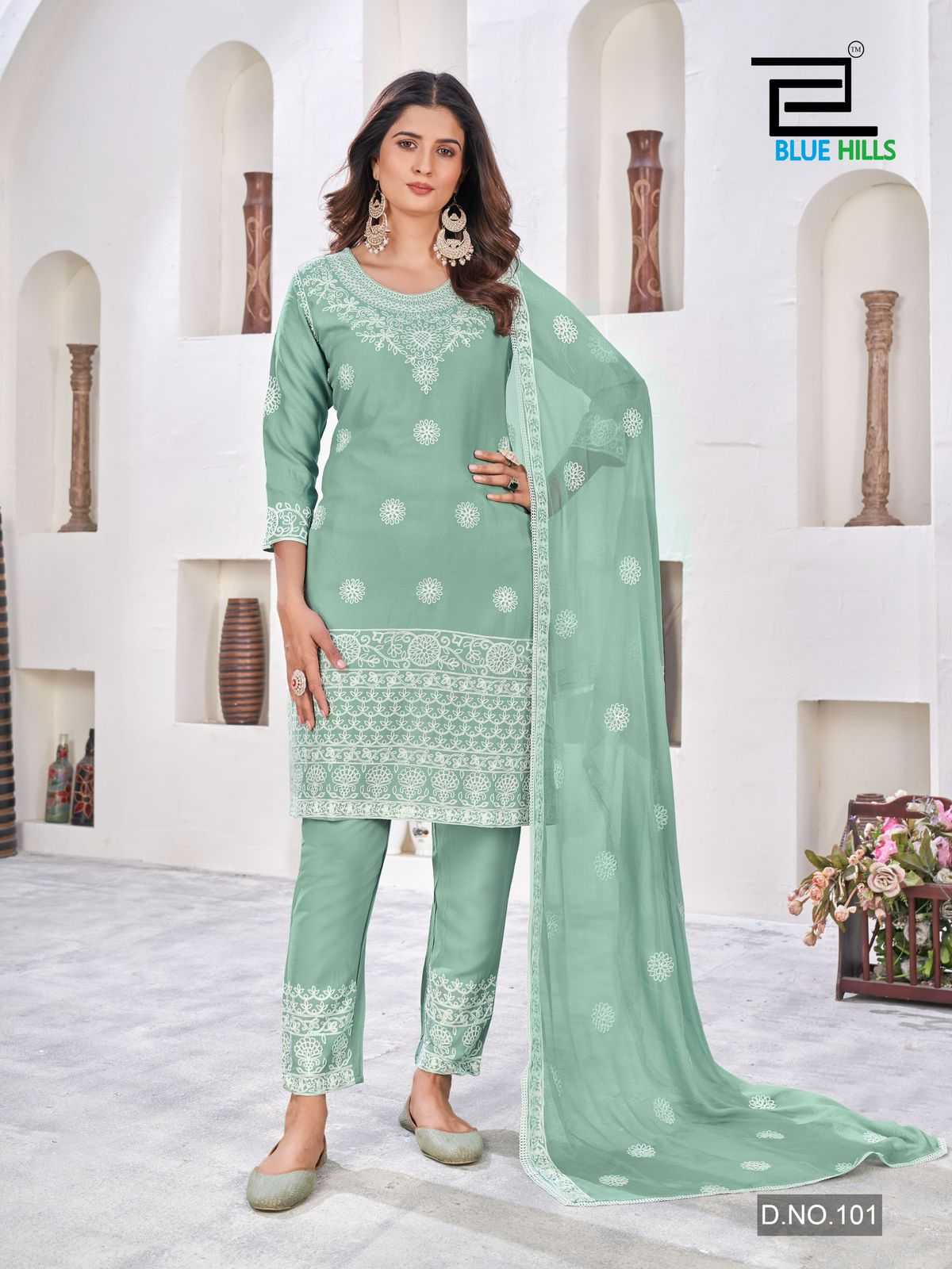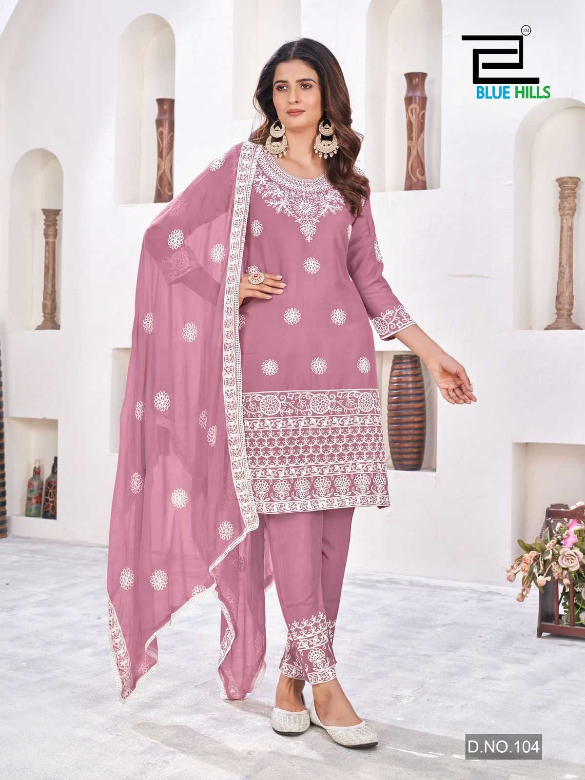 We are launching #Blue Hills Heenaz Vol 1 Fabric : 14 kg Rayon with work Top and pant white thread work Dupatta naznin with work and four side lace Top length 40 Sizes. : M L XL XXL Rate -825+GST 4 pcs set |