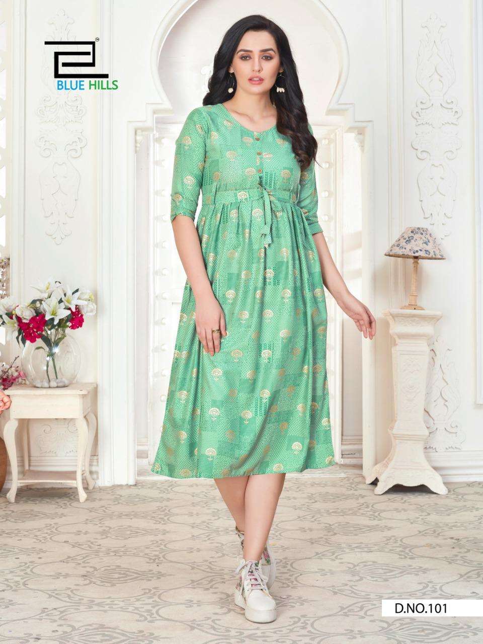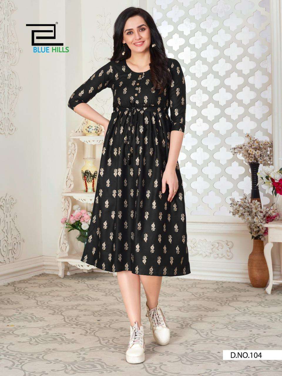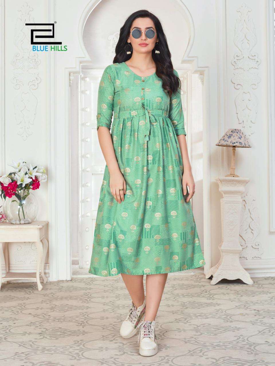 Brand name BLUE HILLS Catalogue name - HI FI Fabric rayon 14 kg with gold print Size M L XL XXL Length 45 Rate 399+GST Set to set . |