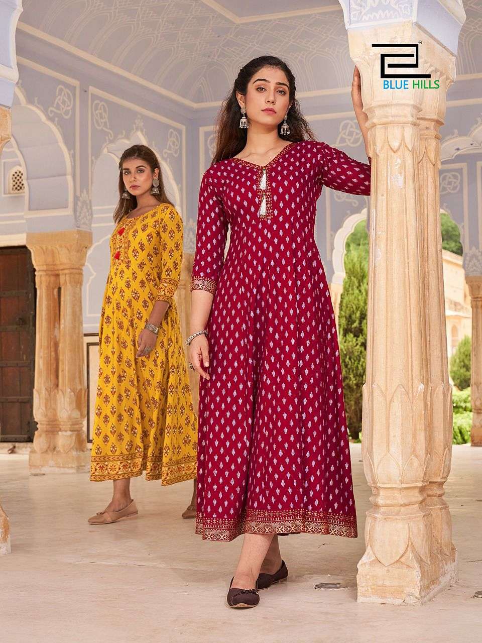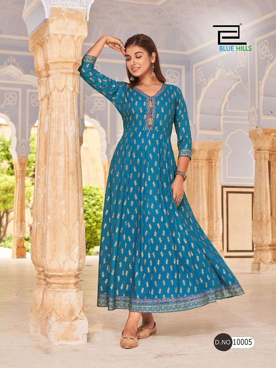 # BLUE HILLS Fabric : Rayon 14kg Foil print Concept - Anarkali Gown Length - 51+ Size : M (38) L (40) XL (42) XXL (44) 3XL (46) 4XL (48) 5XL(50) Rate - 599+GST 8 beautiful colors and print BOOKINGS OPEN Dispatch - 2 to 3 days |