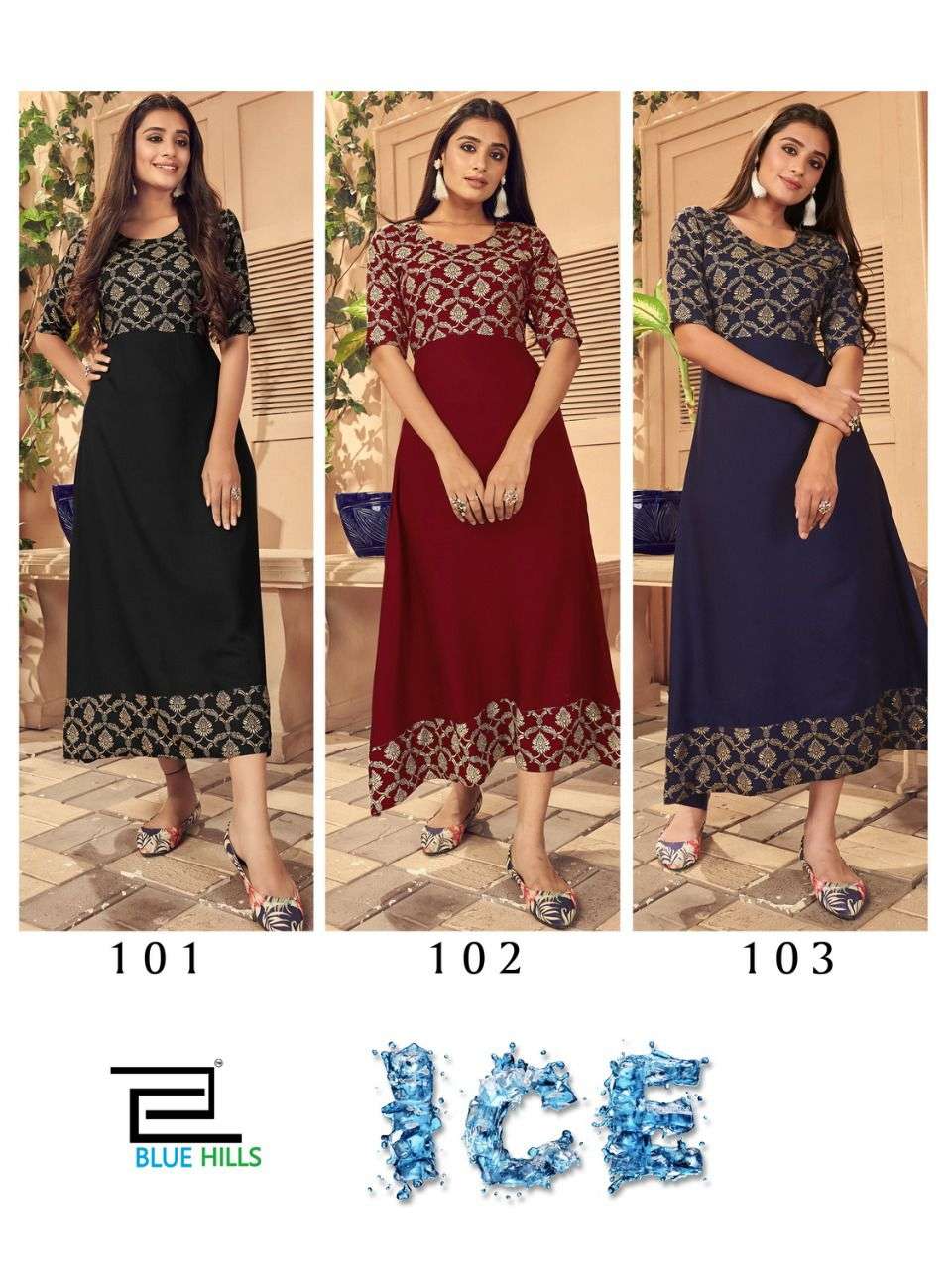 Blue Hills Ice Rayon Printed Gown Collection