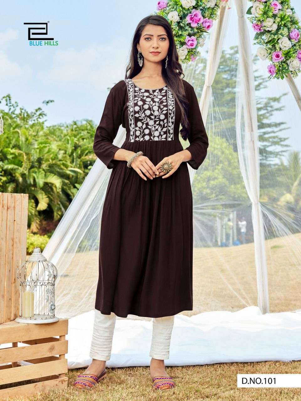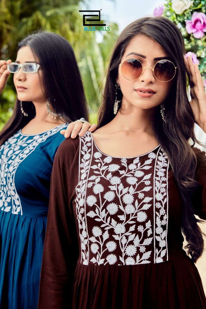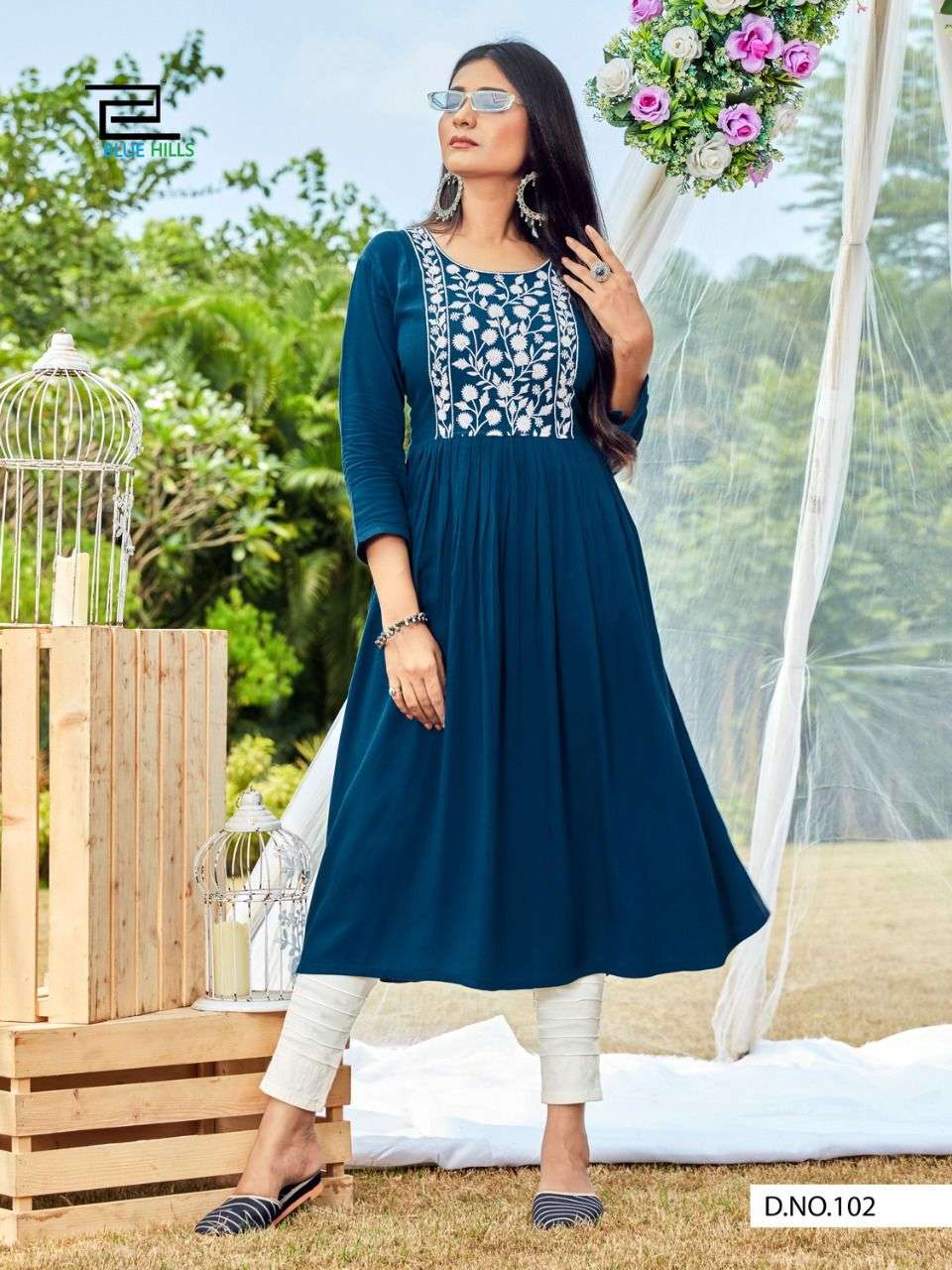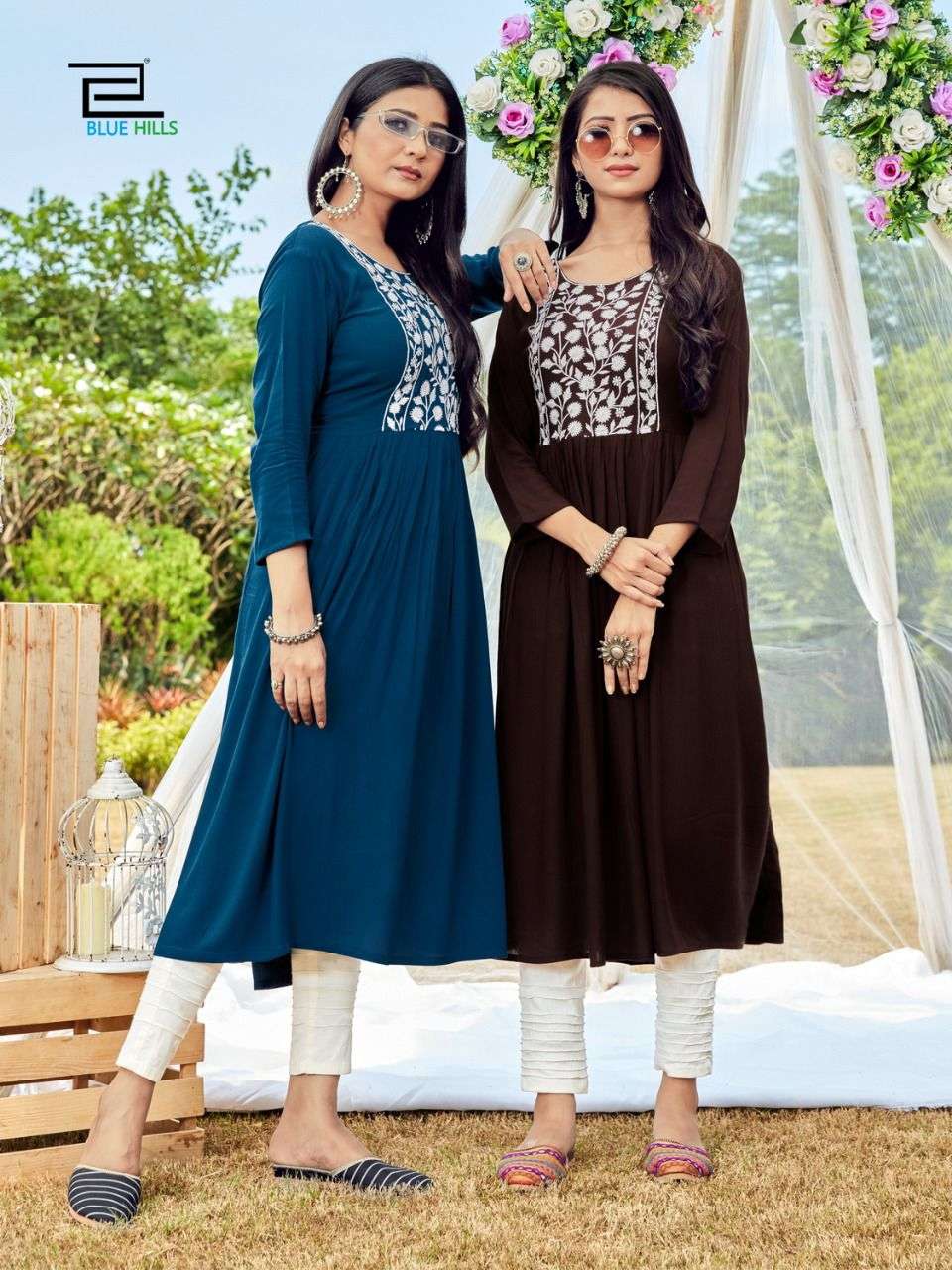 #Blue Hills ( premium) Fabric - rayon rinkal Size - L (40) XL (42) XXL (44) 6 piece bag 💼 Embroidery work Length 46 Rate - 525+GST Ready stock |