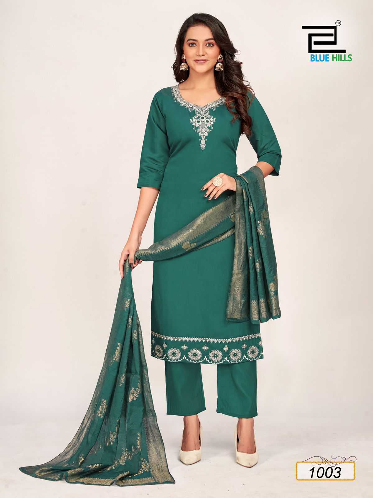 blue hills jhanvi 1001-1004 roman silk readymade big size stylish 3pcs dress