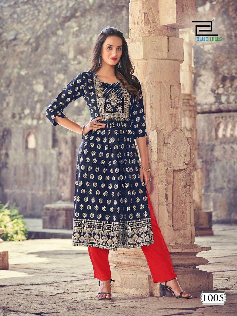 blue hills launch divine beautiful designs nayra cut kurti catalog