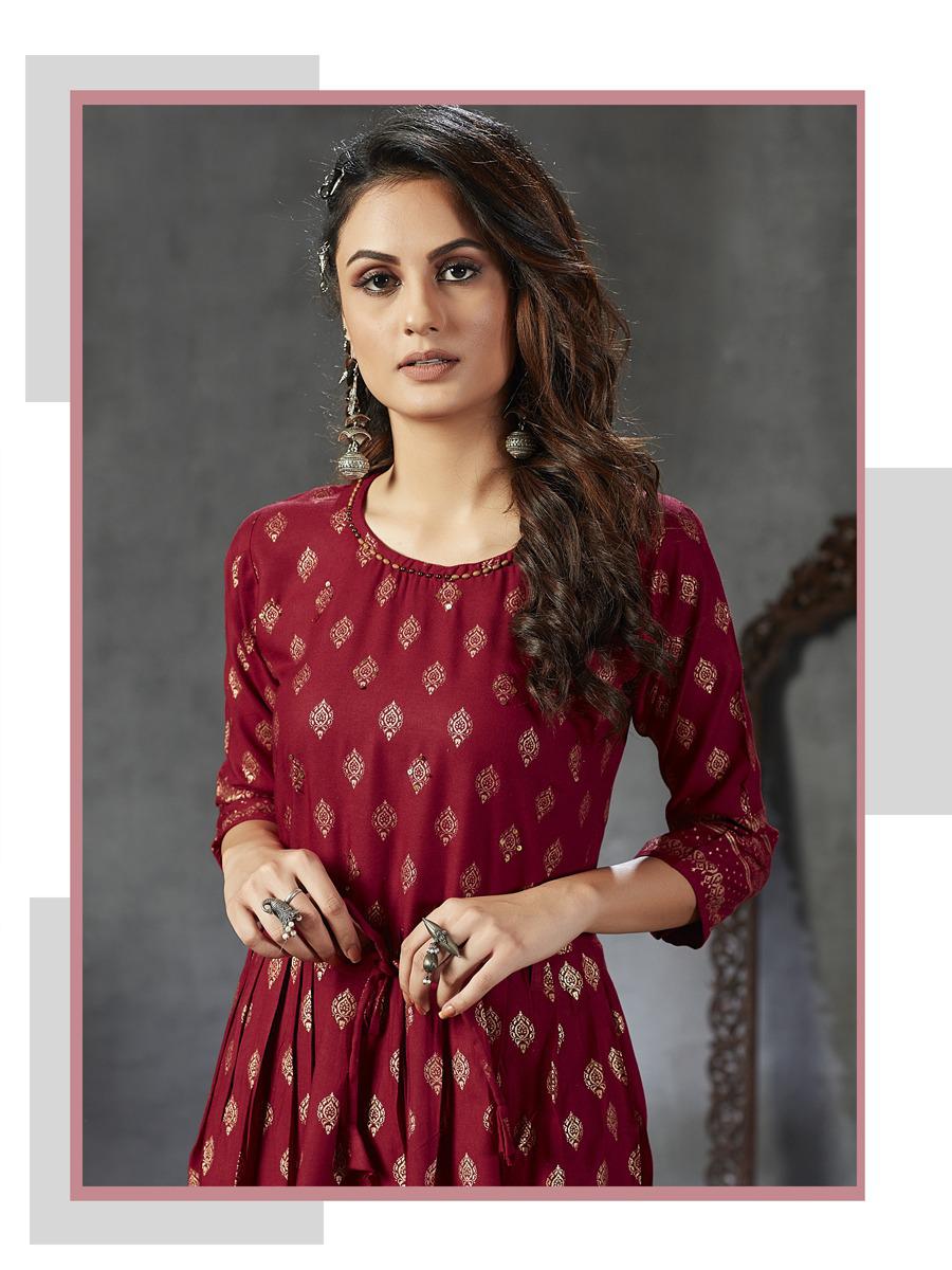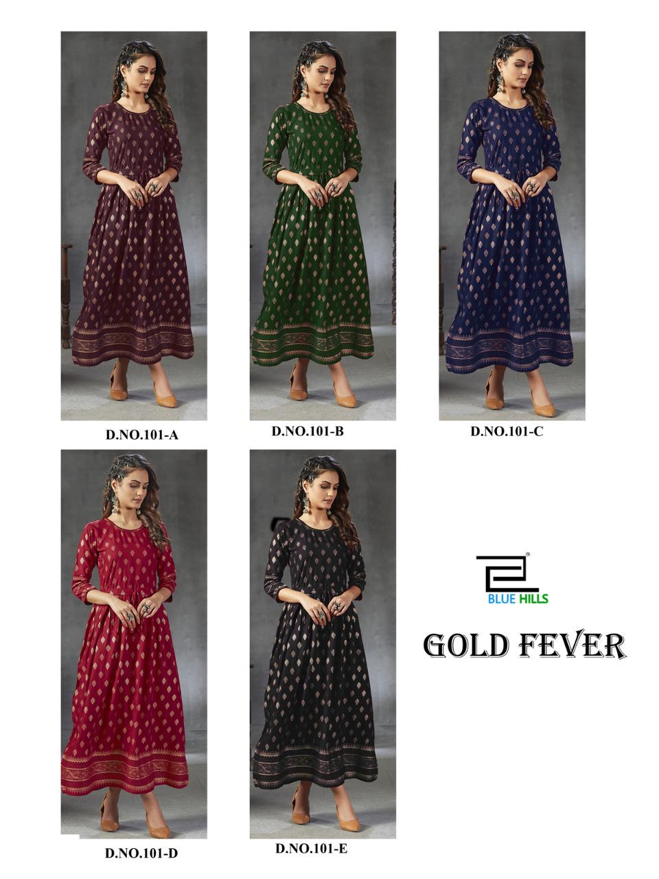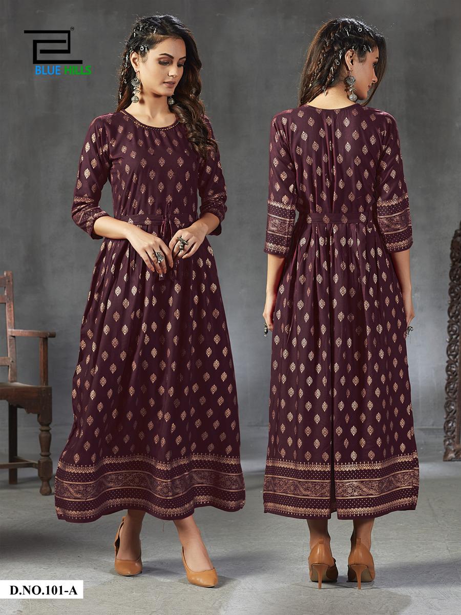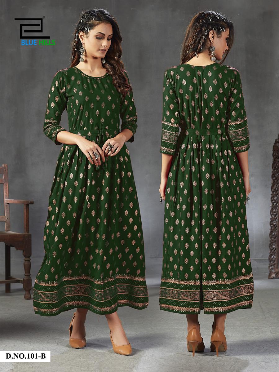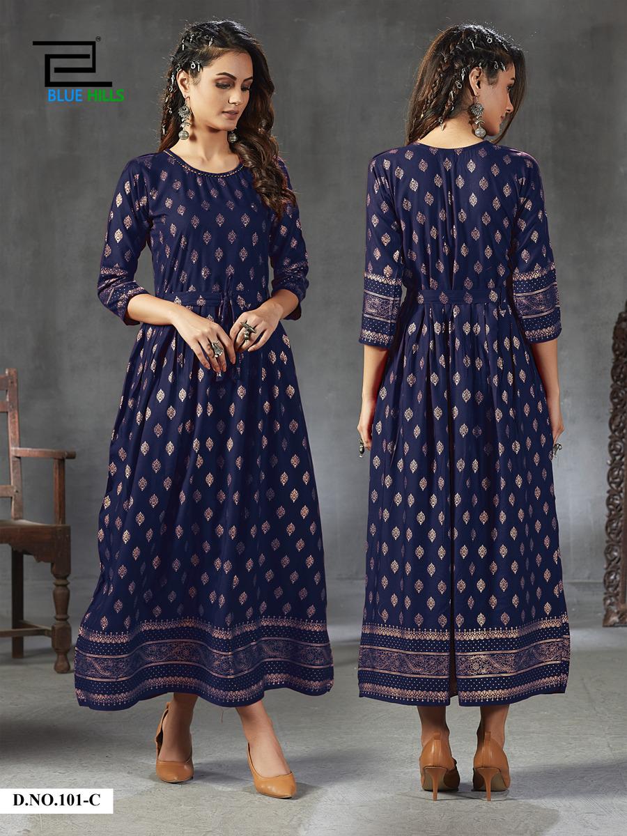 Blue Hills Launch Gold Fever Rayon With Work Long Stylish Kurti For Girls Collections