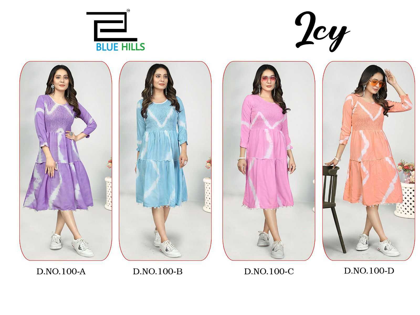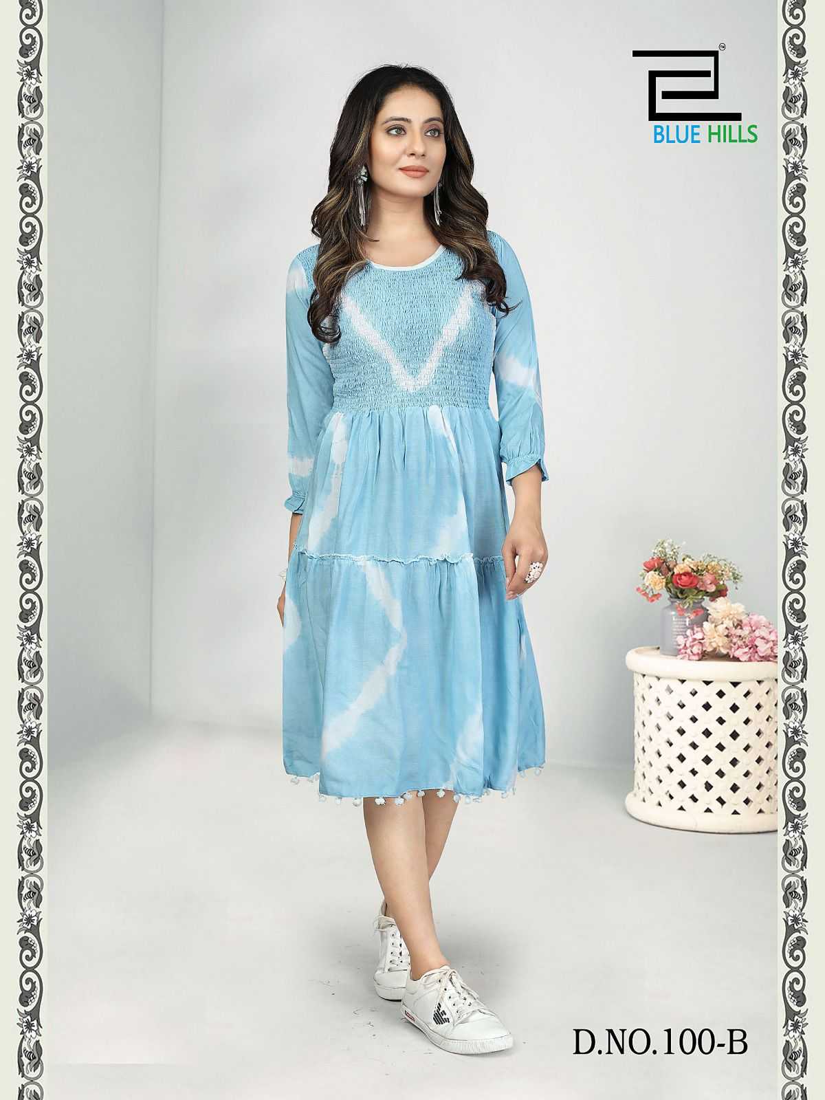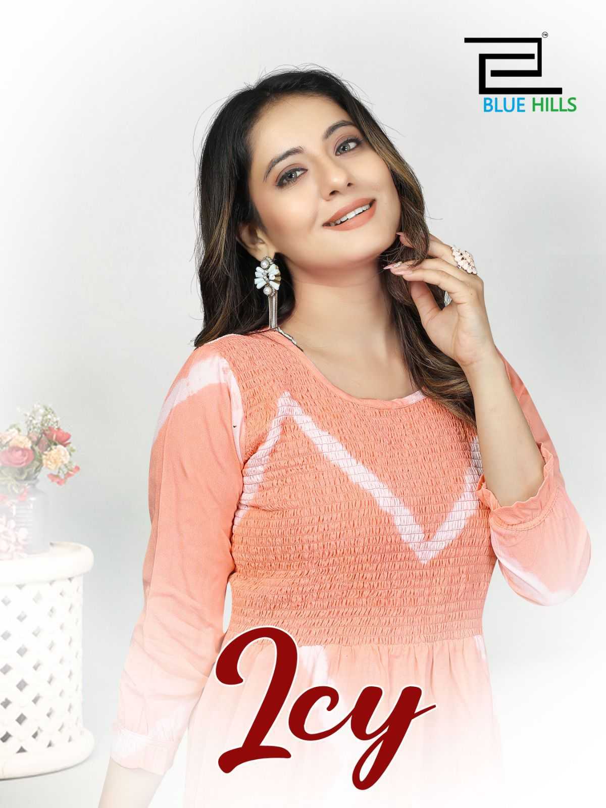 blue hills lcy readymade rayon smoke pattern girls western top collection