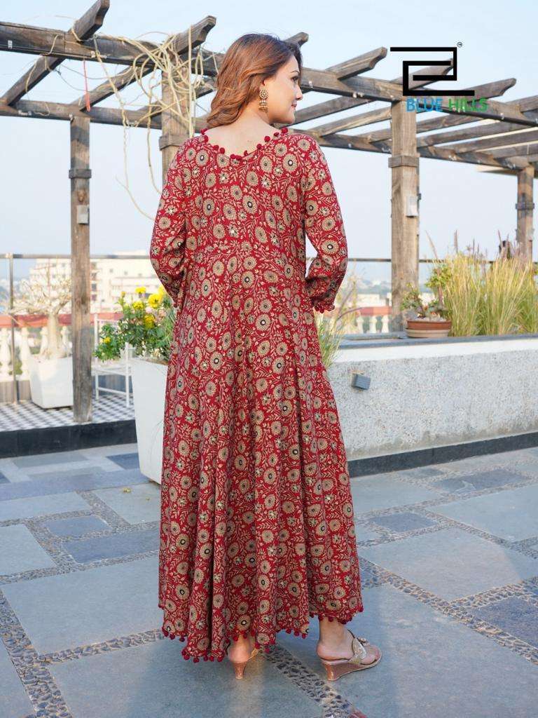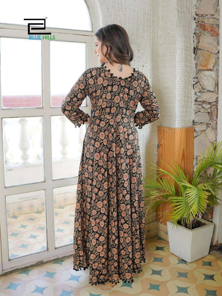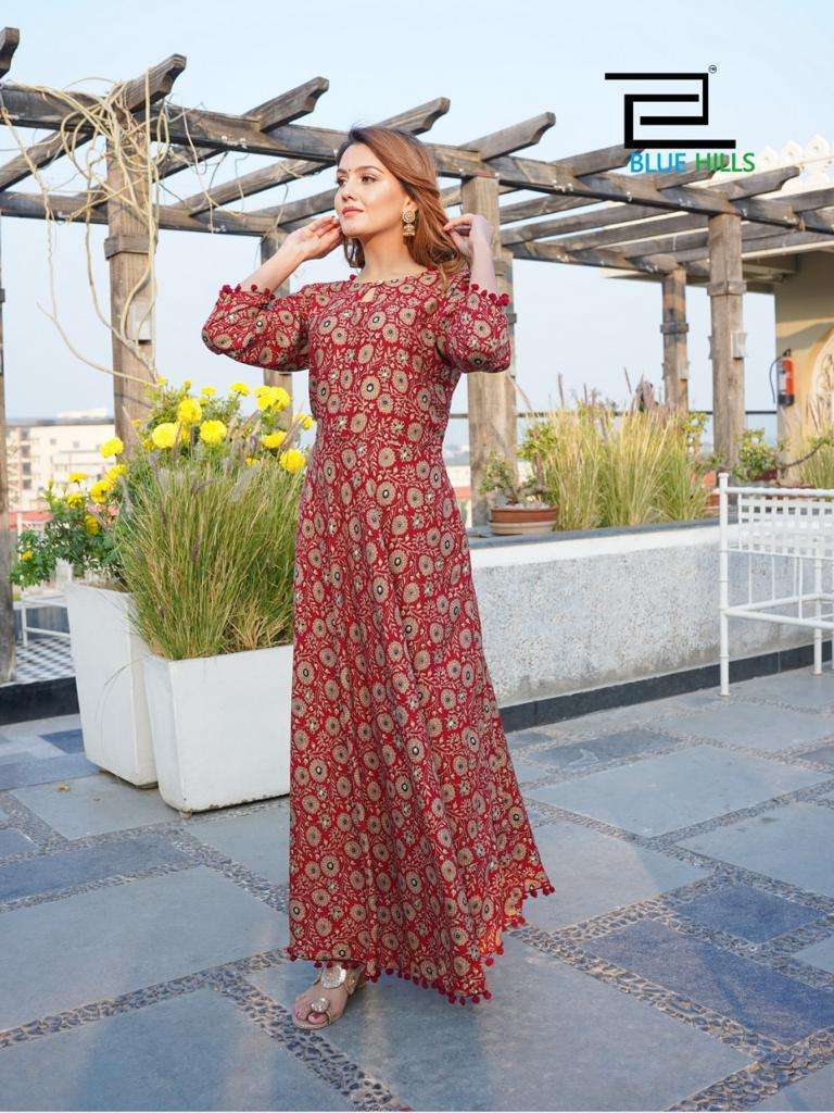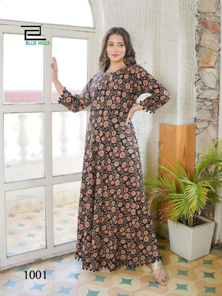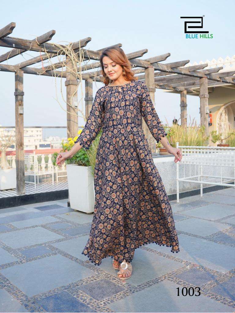 blue hills magic moments rayon foil print flair style kurtis best supplier in surat