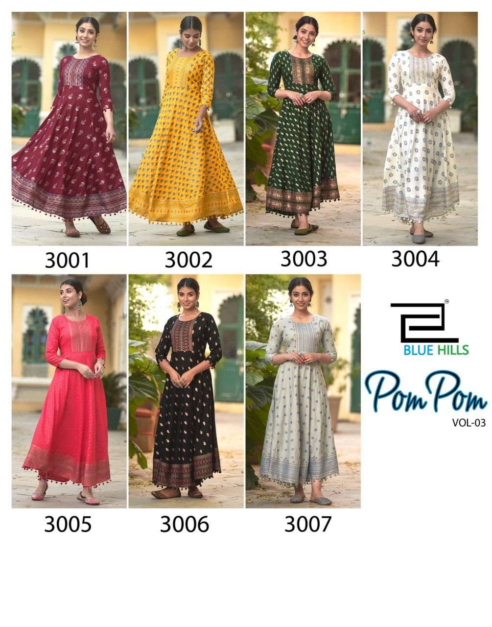 blue hills pom pom vol 3 anarkali designer kurti wholesaler