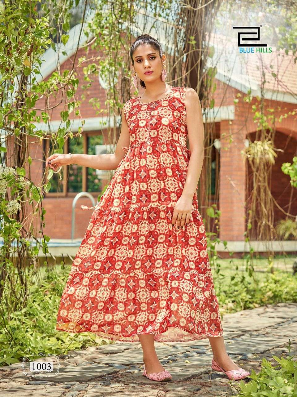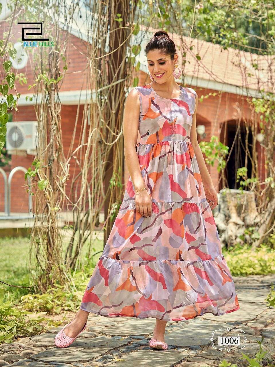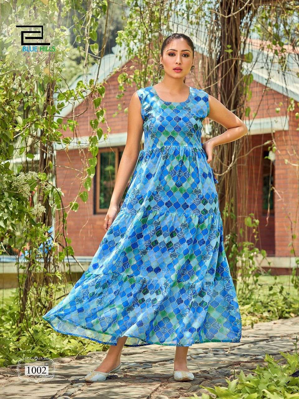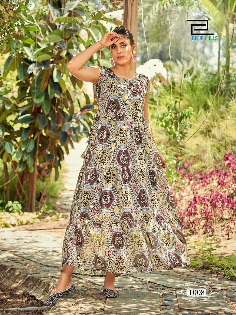 blue hills (KURTI) - Long Gown style with Swarovski work Size:- M (38) L (40) XL (42) XXL (44) Size:- 3XL (46) 4XL (48) 5XL (50) - 625+GST 8 DESIGNS CATALOGUE Dispatch 2 to 3 days |
