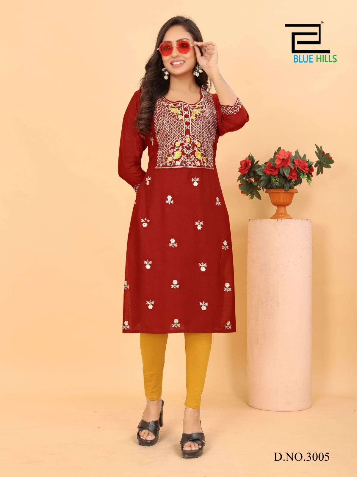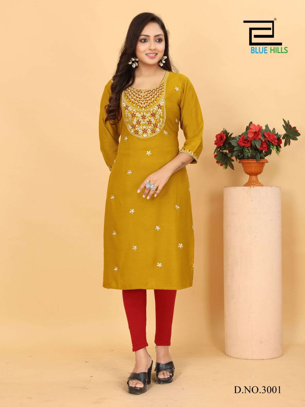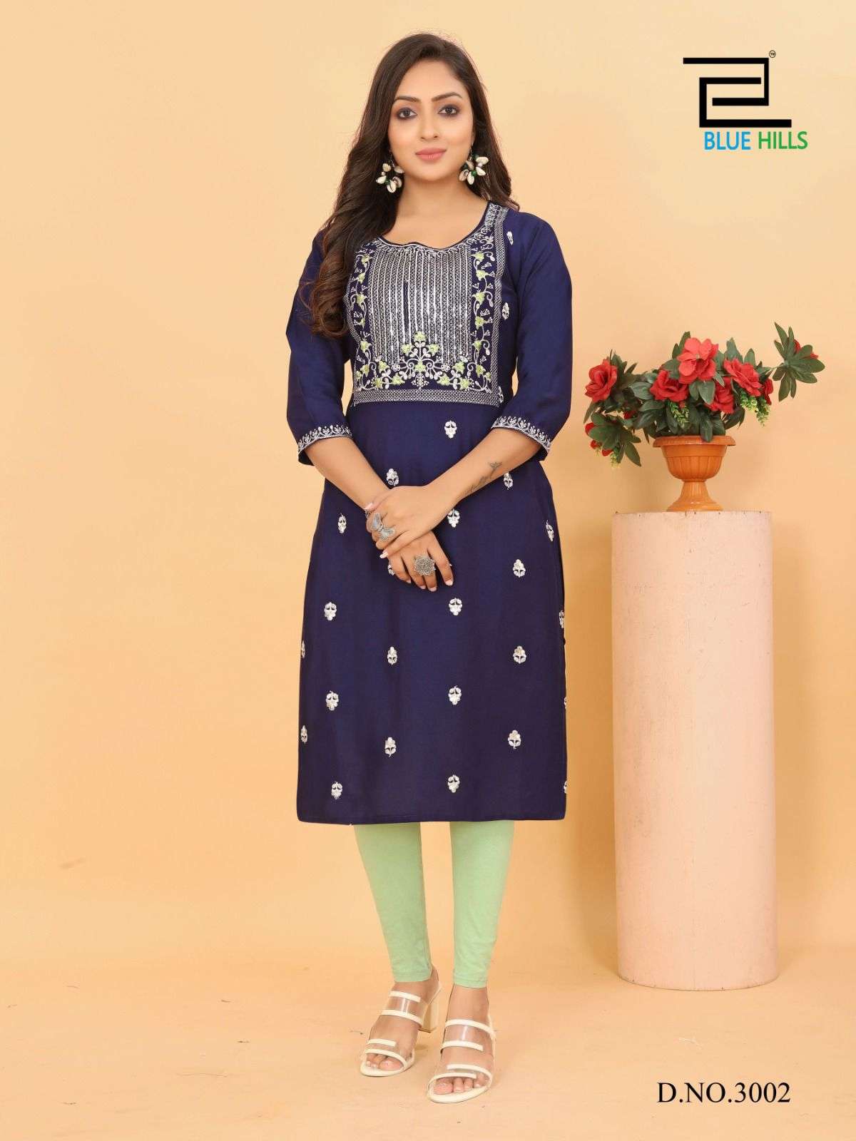 blue hills present blue star vol 3 readymade comfy rayon straight kurti