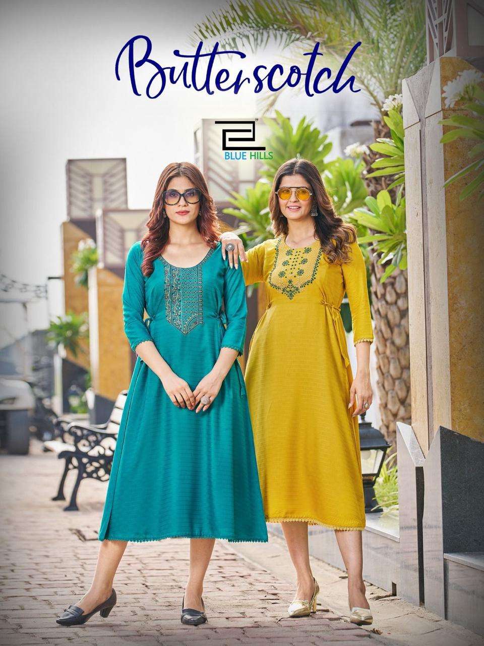 blue hills present butter scotch readymade midi style fancy kurtis catalog