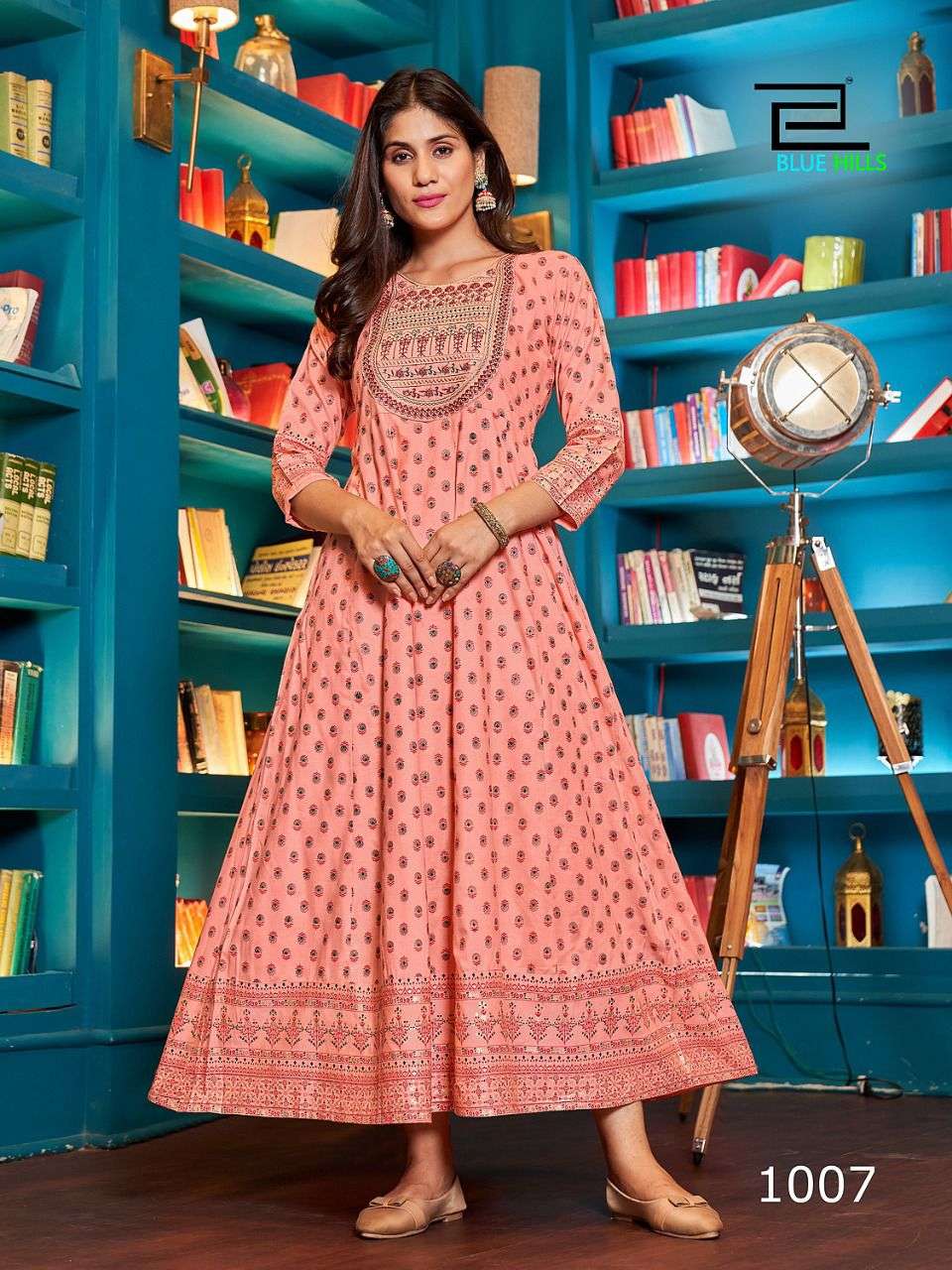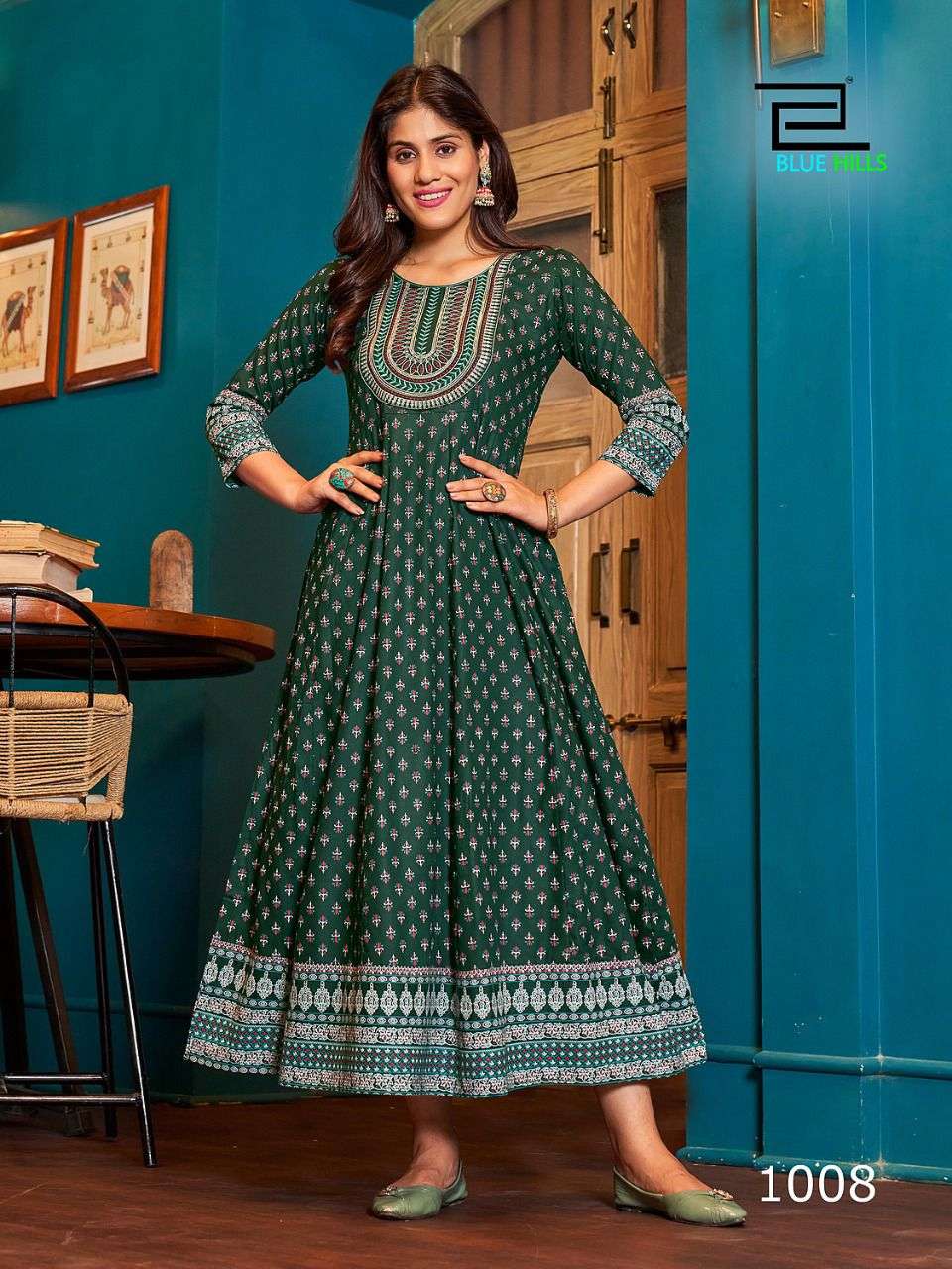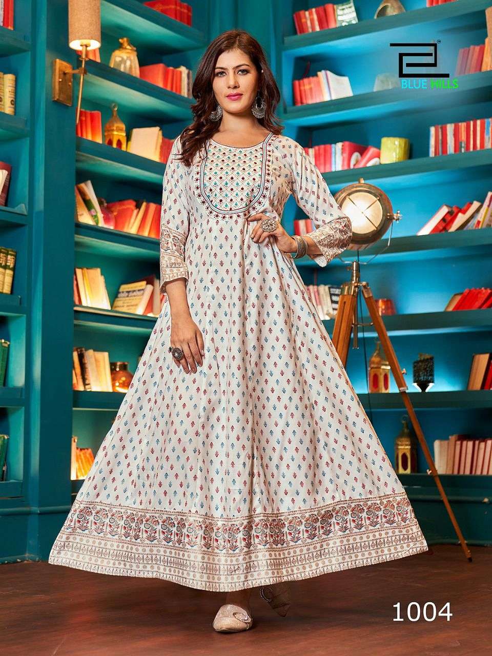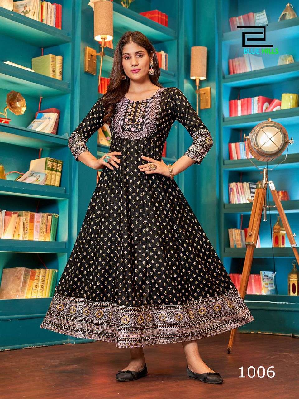 blue hills present cheese rayon anarkali gown plus size big size gown collection
