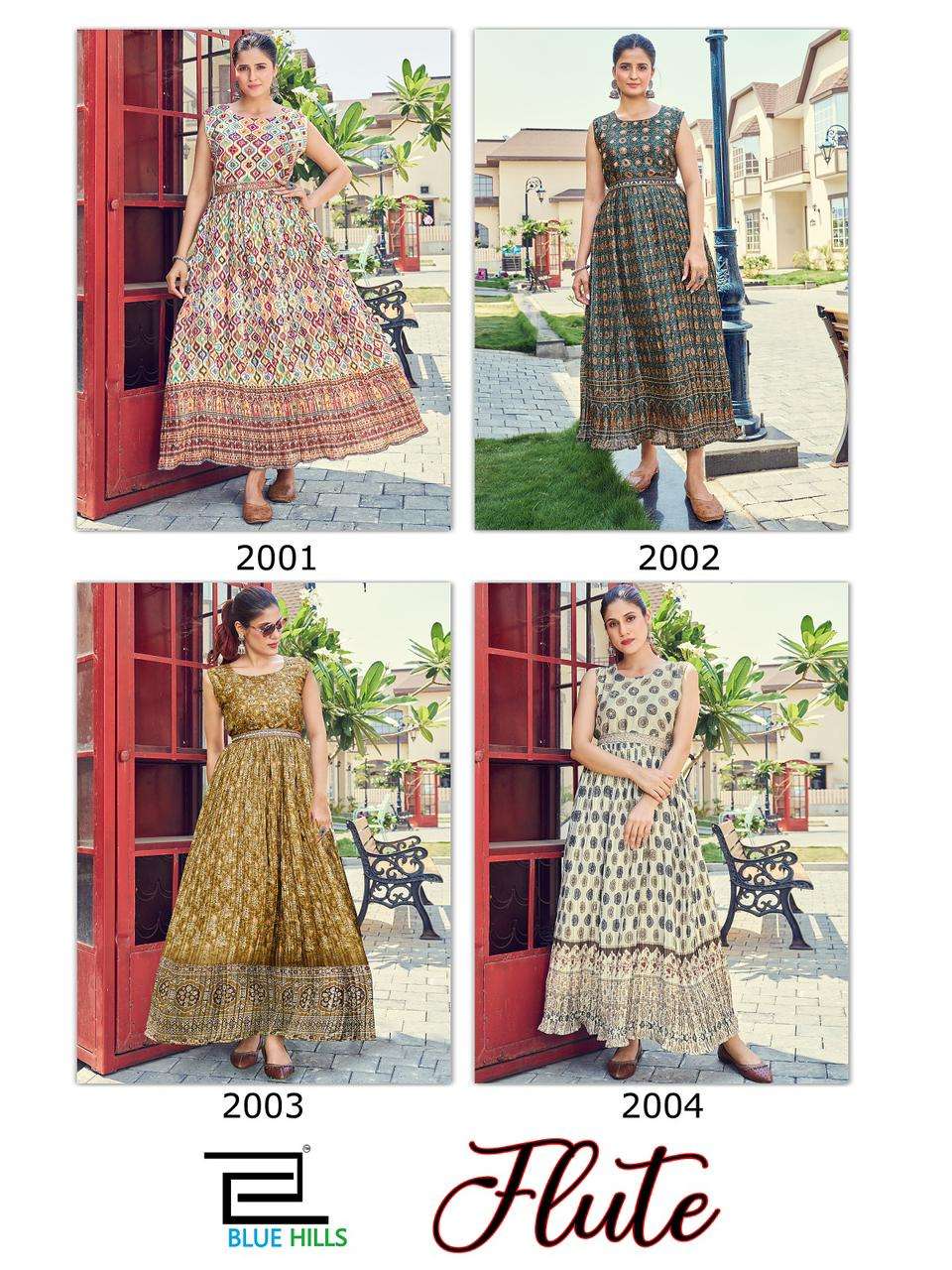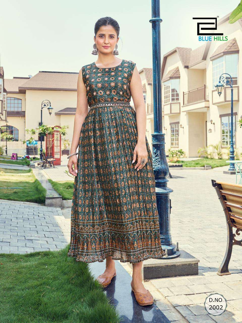 blue hills present flute chinon digital print fancy stitch gown with belt