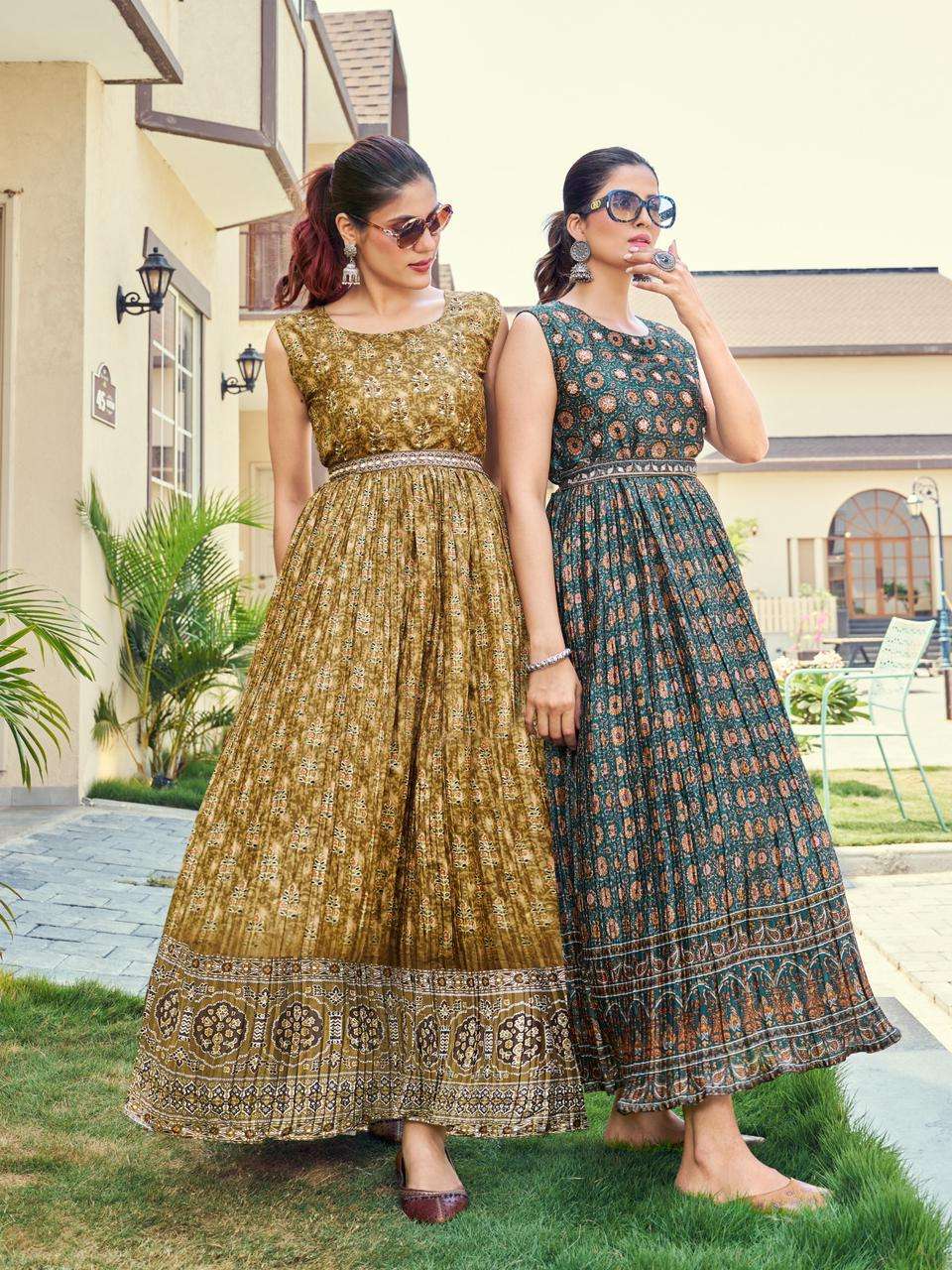 #*BLUE HILLS* 👗CLOTH-: *CHINON digital print with hand work Concept-: *with belt hand work real mirror With inner Crape Size:- S 36 M (38) L (40) XL (42) XXL (44)
