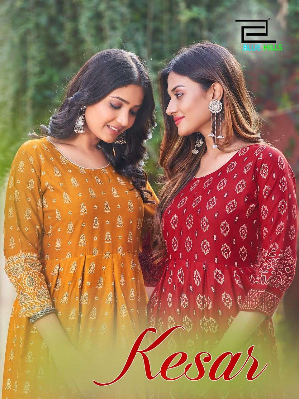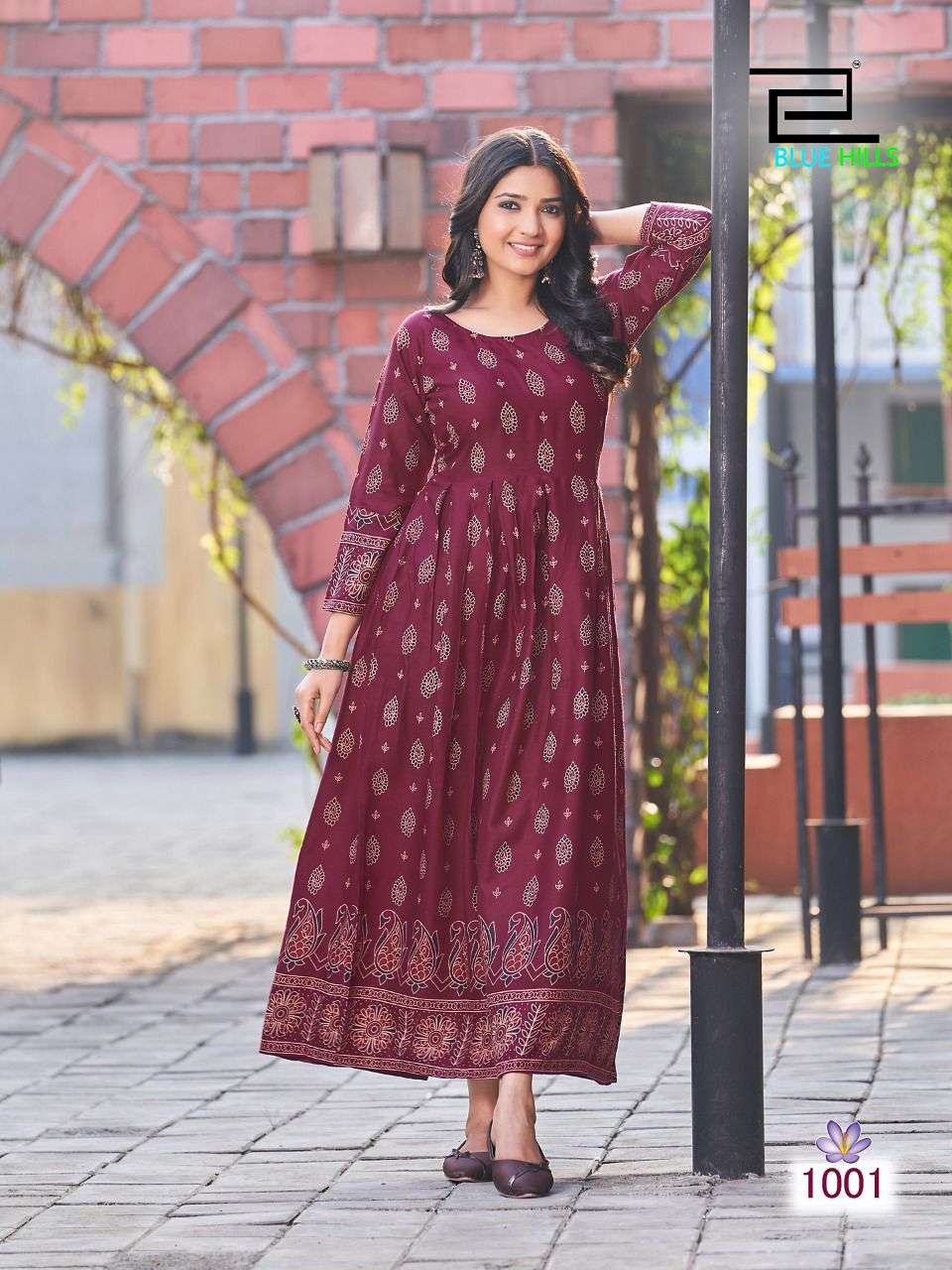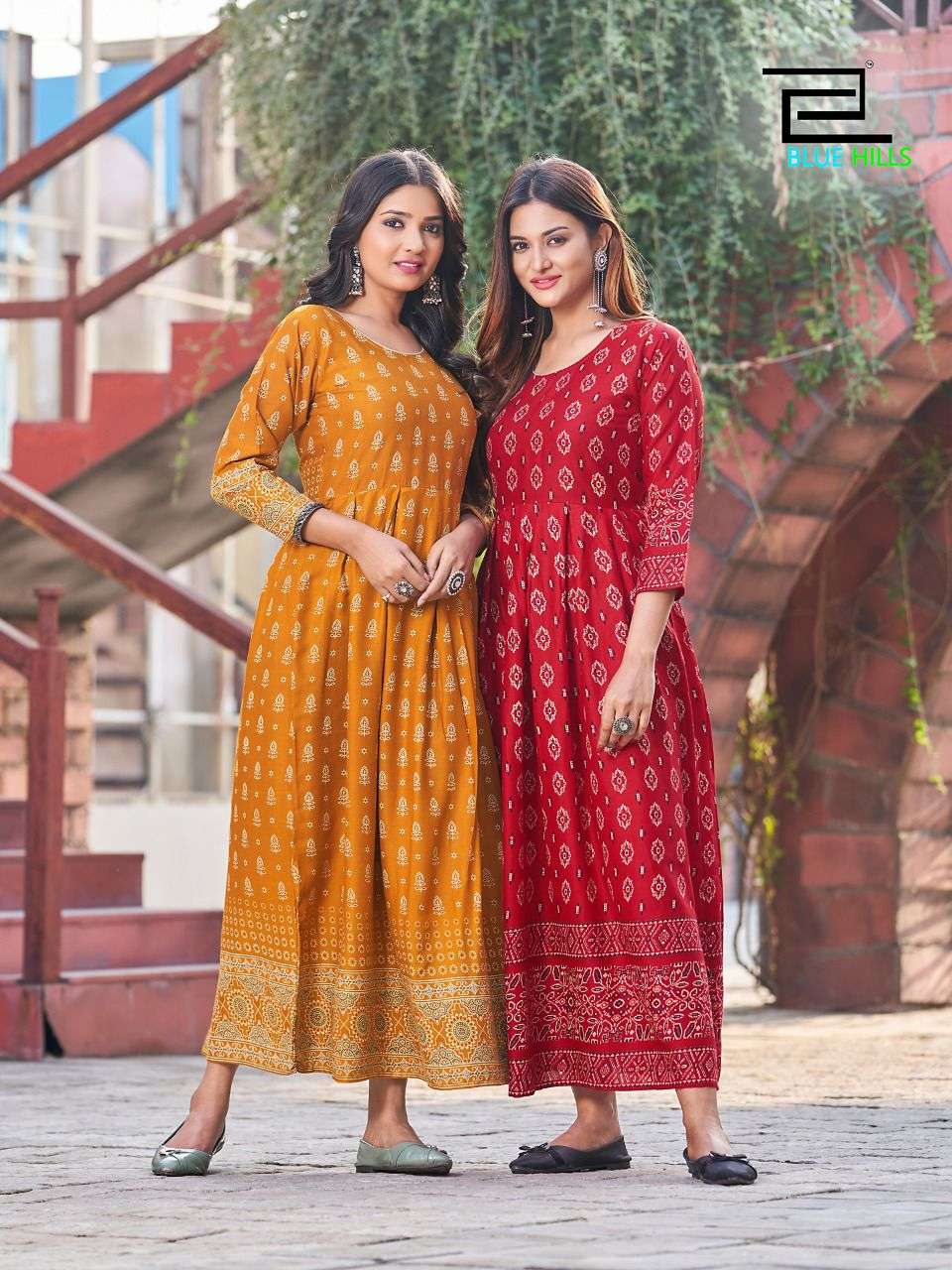blue hills present kesar readymade rayon beautiful print long gown