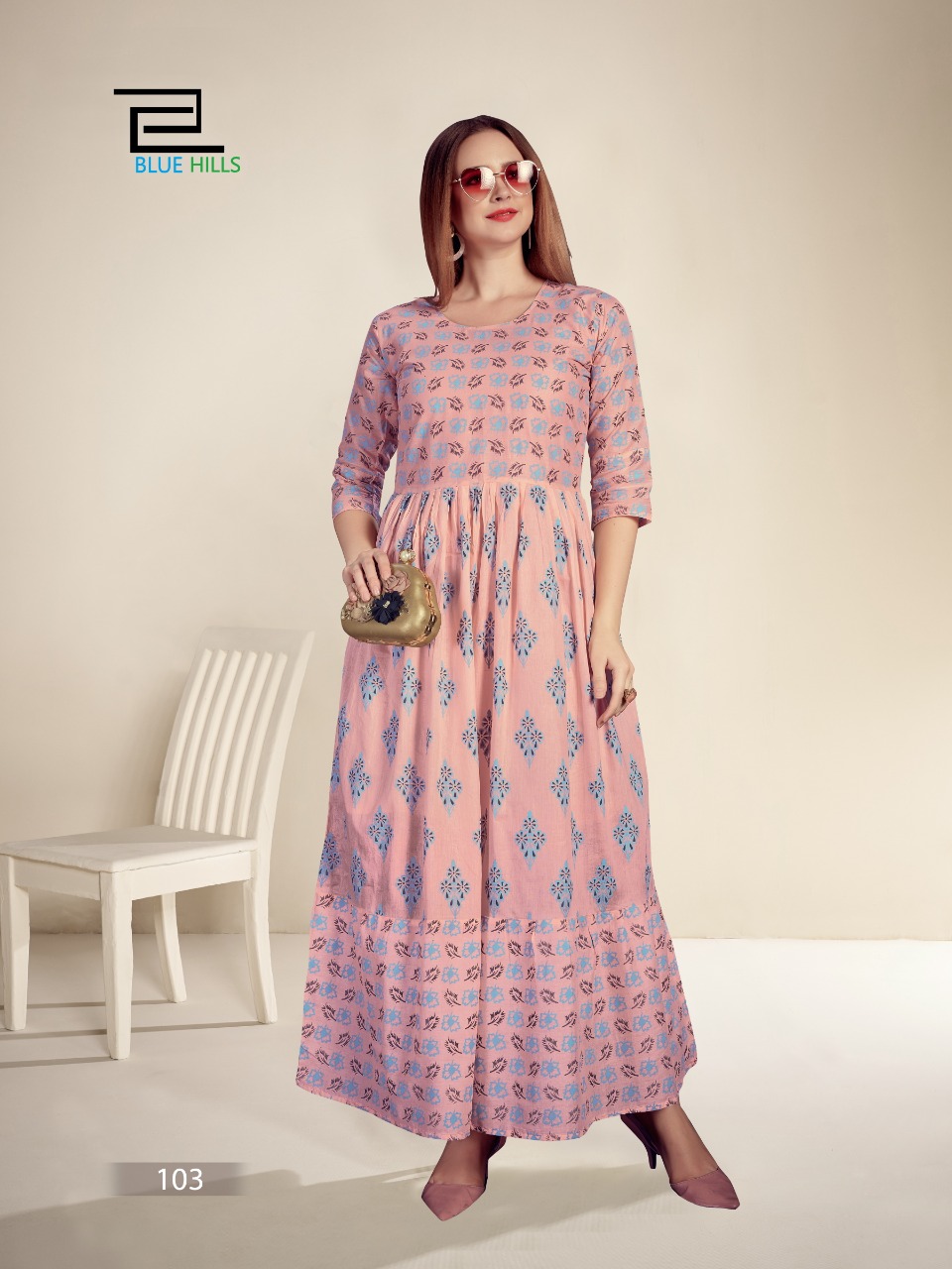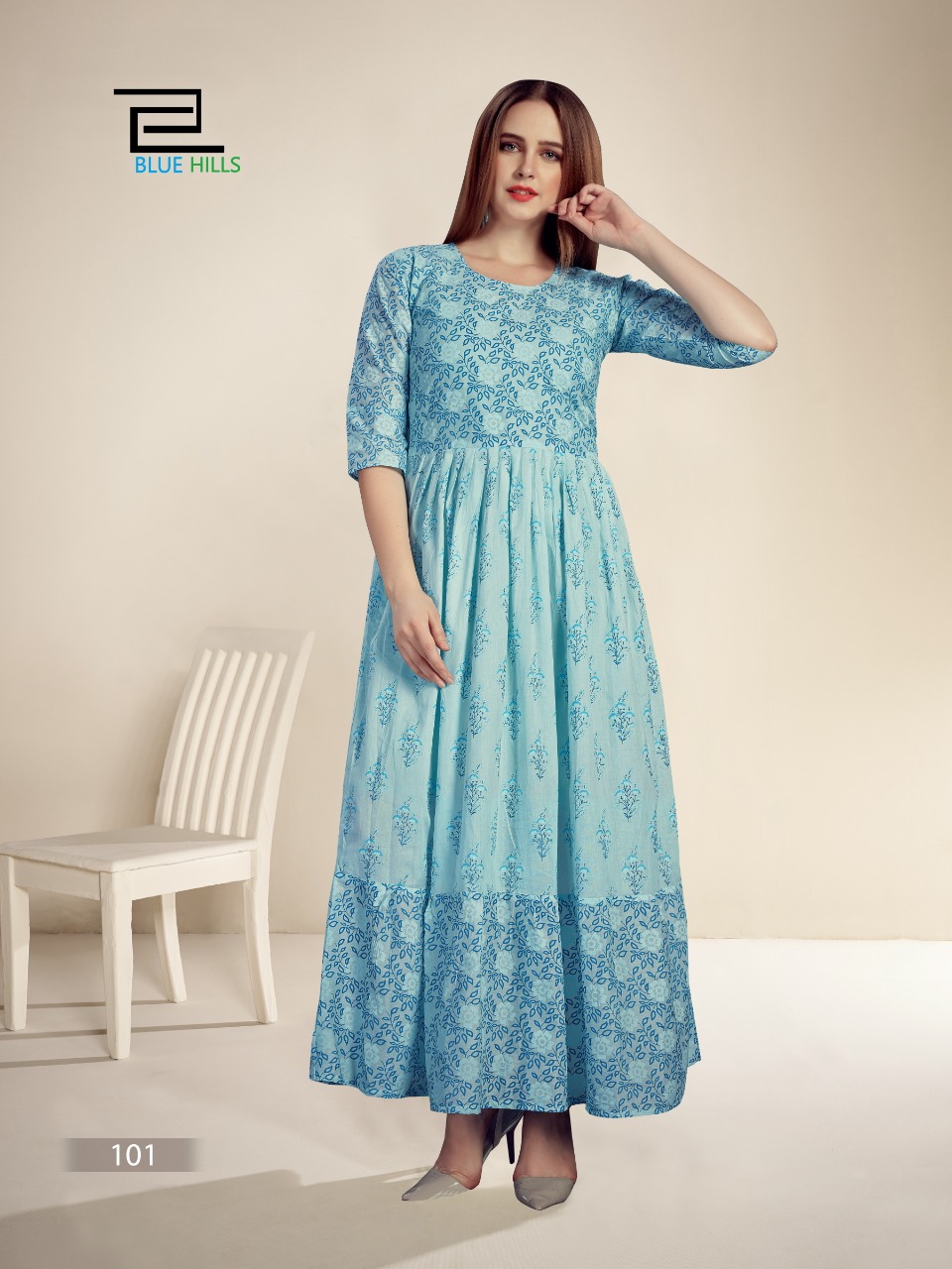 Blue Hills Present Livik Vol 1 Cotton Long Gown Style Kurti Wholesale Rate