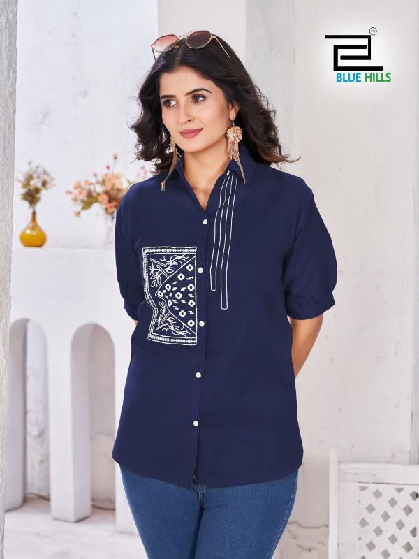 Blue Hills NATHALIA Shirt Fabric : COTTON FLEX All button openable length 28 Sizes. : S M L XL XXL 3xl Rate -415 +GST 8 pcs set Dispatch- 2 to 3 days |