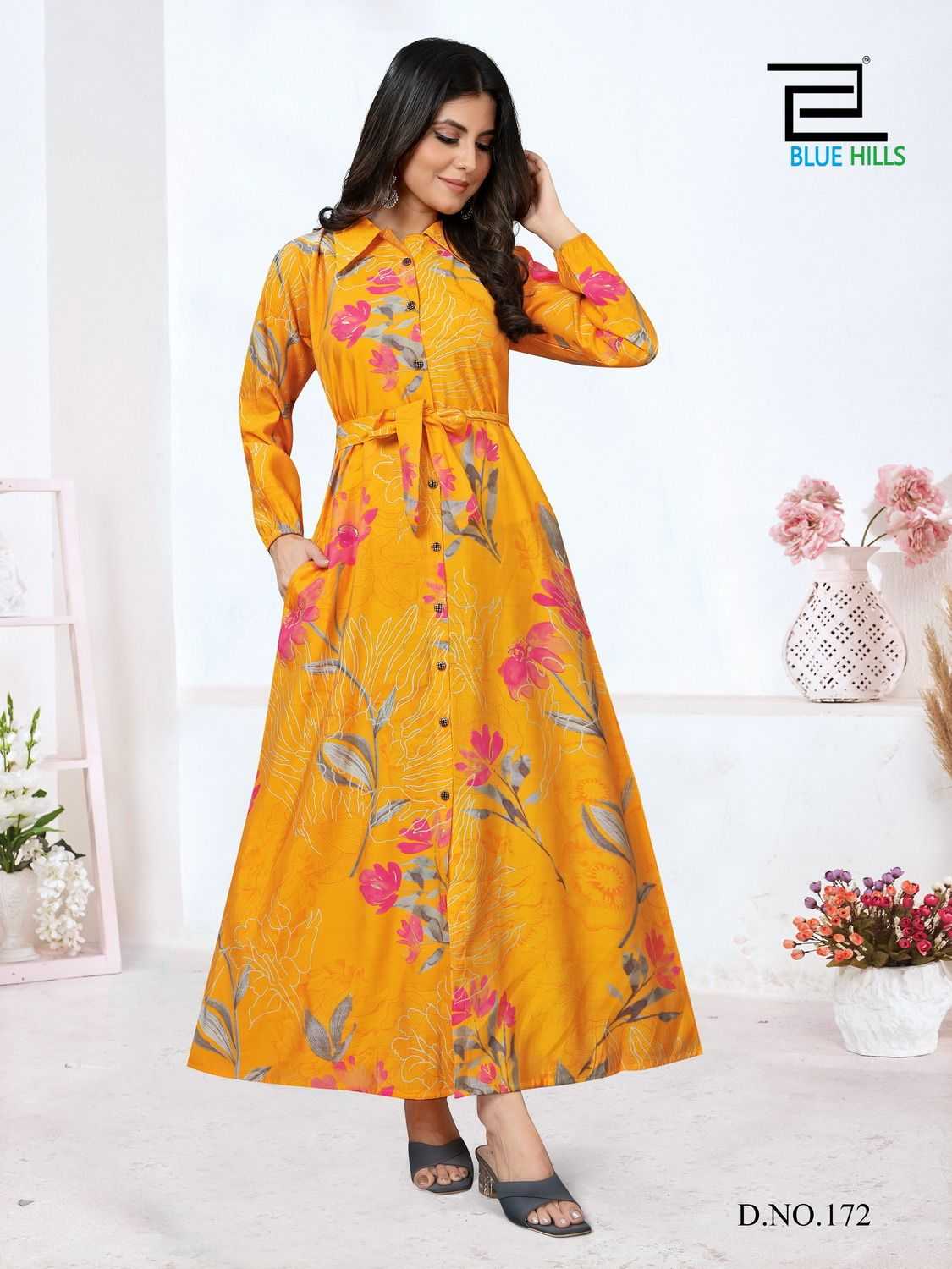 # BLUE HILLS With belt Length - 52+ Size - L (40) XL (42) XXL (44) 3xl (46) 4Xl (48) All button openable 3 beautiful prints Rate - 650+GST Dispatch - 2 to 3 days Limited stock |