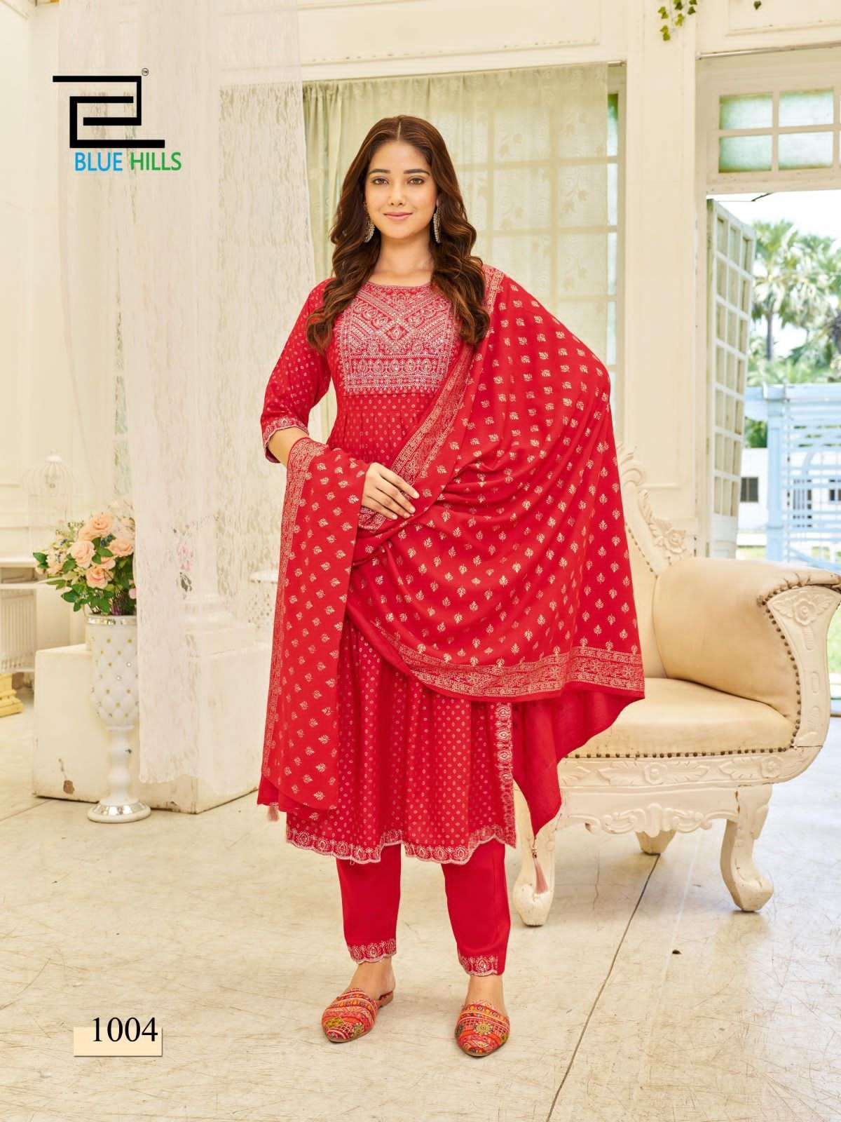 #Blue Hills 👗CLOTH:- RAYON 14KG FOIL PRINT DUPATTA-: Chanderi foil print with Accessories Concept-: 3 PCS ✅Pattern-: Nayra Cut With Full Dori and sequence Embroidery in cut work Pattern Size:- M L XL XXL 3XL 4XL 5XL Rate - 995+GST 5 DESIGNS CATALOGUE99 |