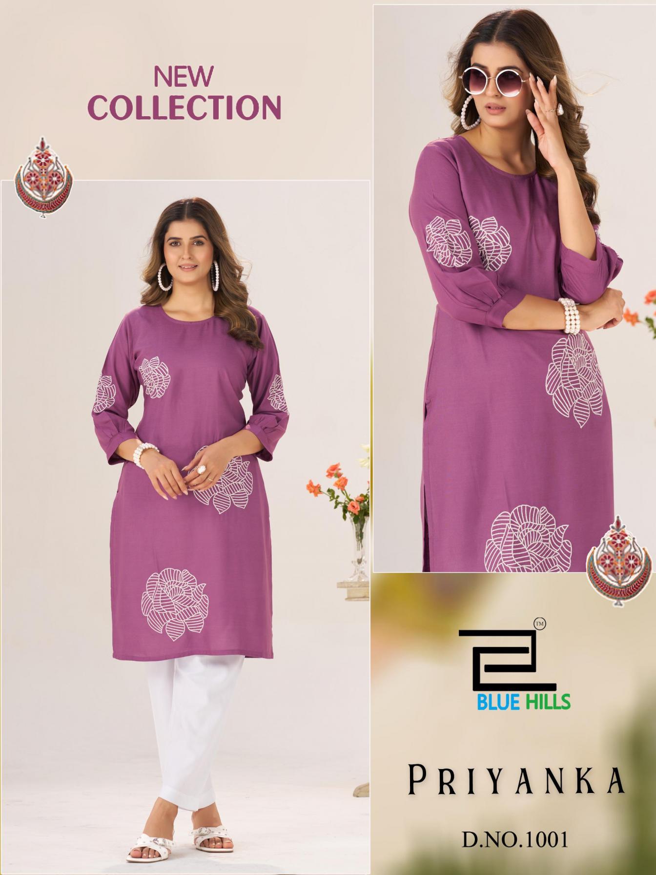 #Blue Hills Kurti PRIYANKA Fabric : Heavy 14 kg Rayon Embroidery work kurti side cut Length 41 Sizes. : M L XL XXL 3xl 4xl 5xl Rate - 380+ GST 6 pcs set Dispatch- ready |