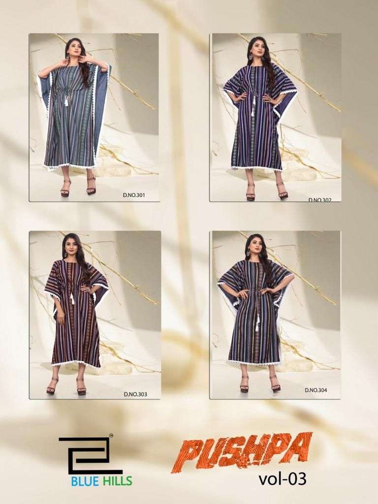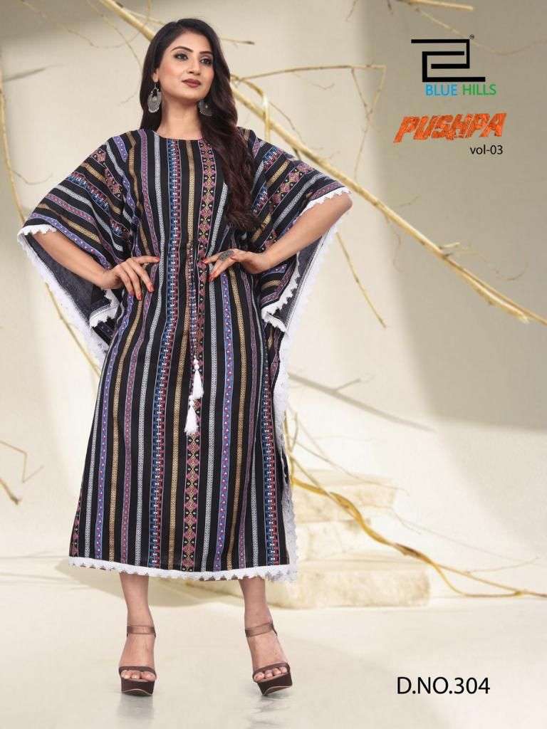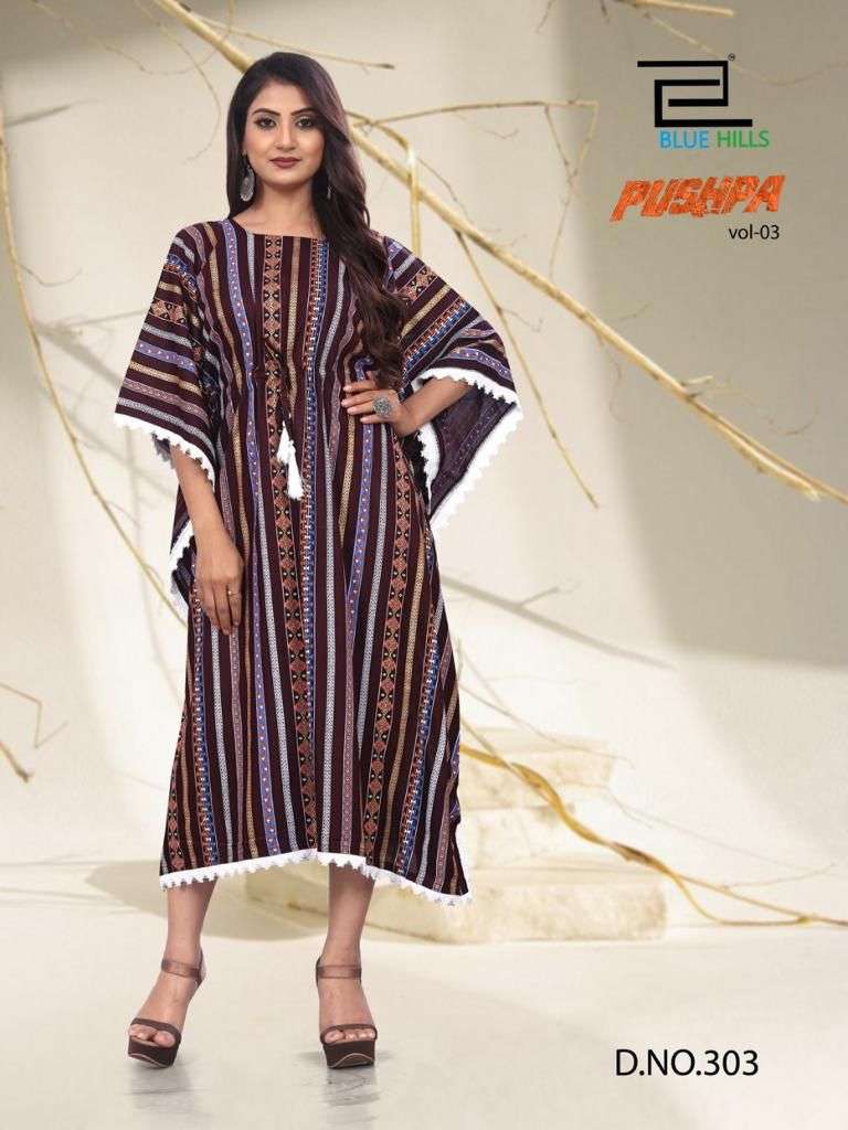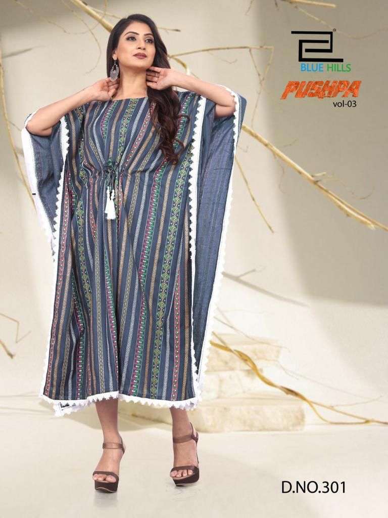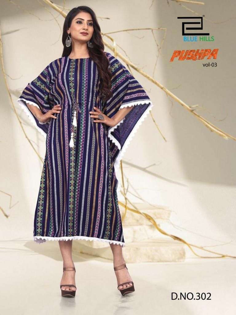 blue hills pushpa vol 3 rayon printed kaftan collection