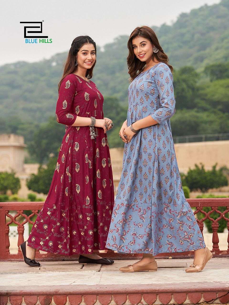 # BLUE HILLS 🌴RANI VOL-1🌴 Size:- *M (38) L (40) XL (42) XXL (44) 3XL (46) 4XL (48) 5XL (50) Rate - 599+GST Length - 52+ 8 beautiful print and colors Dispatch - ready stock Limited stock |