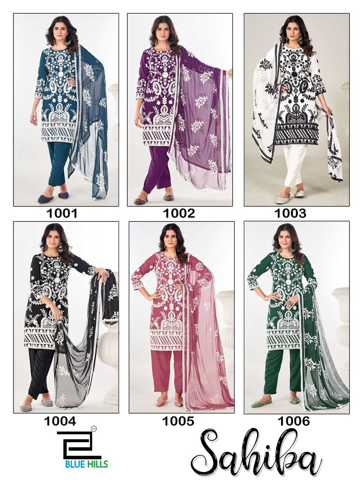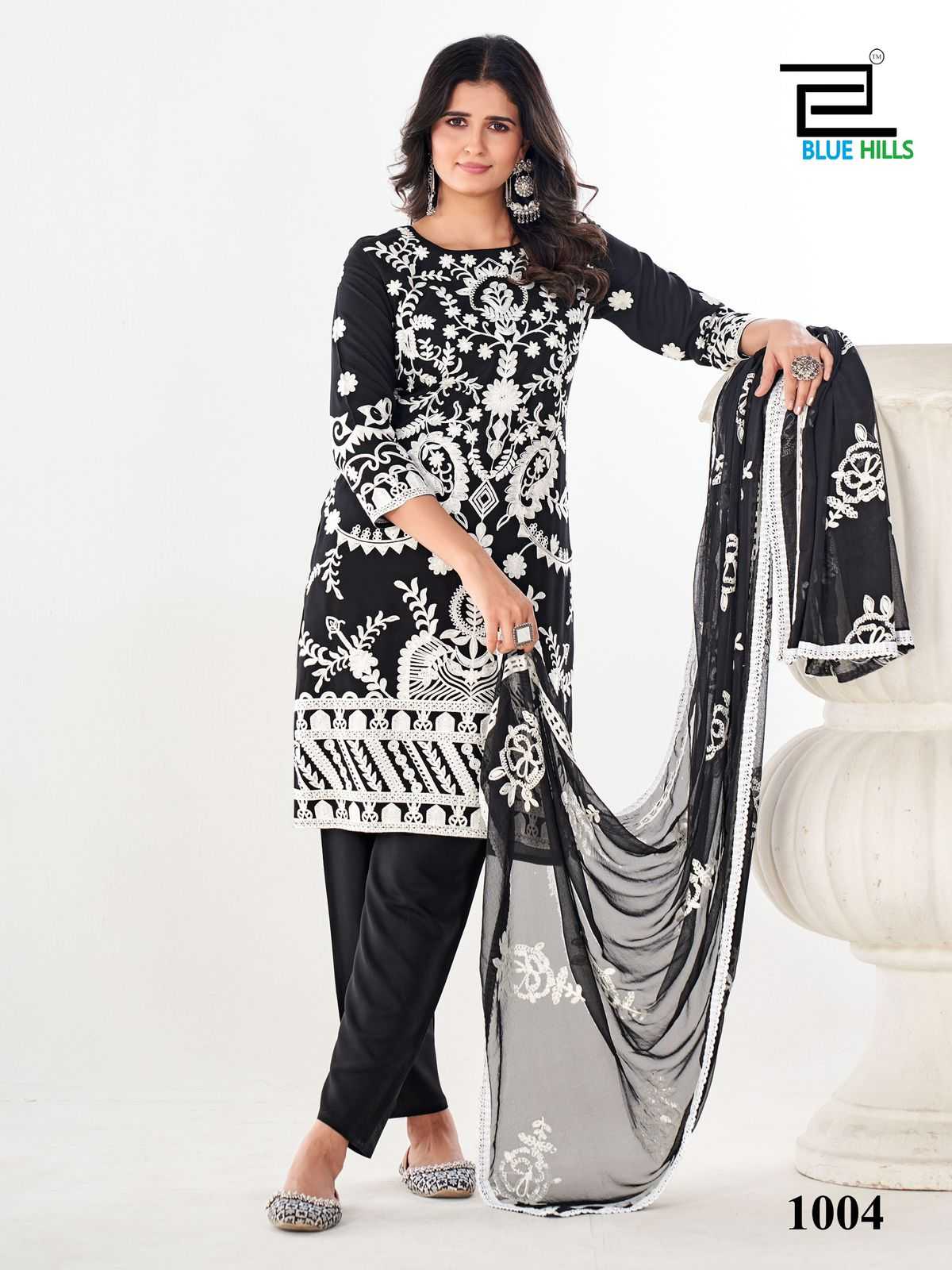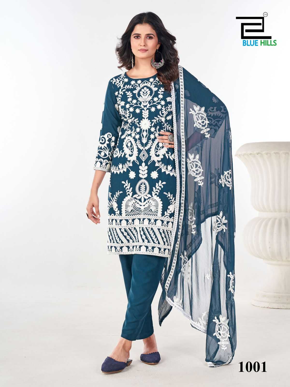 #Blue Hills SAHIBA Top + pant + dupatta Fabric : 14 kg rayon Heavy work Dupatta work heavy kurti side cut Top Length 40 Sizes. : M L XL XXL 3xl 4xl 5xl Rate - 850 + GST 6 pcs |