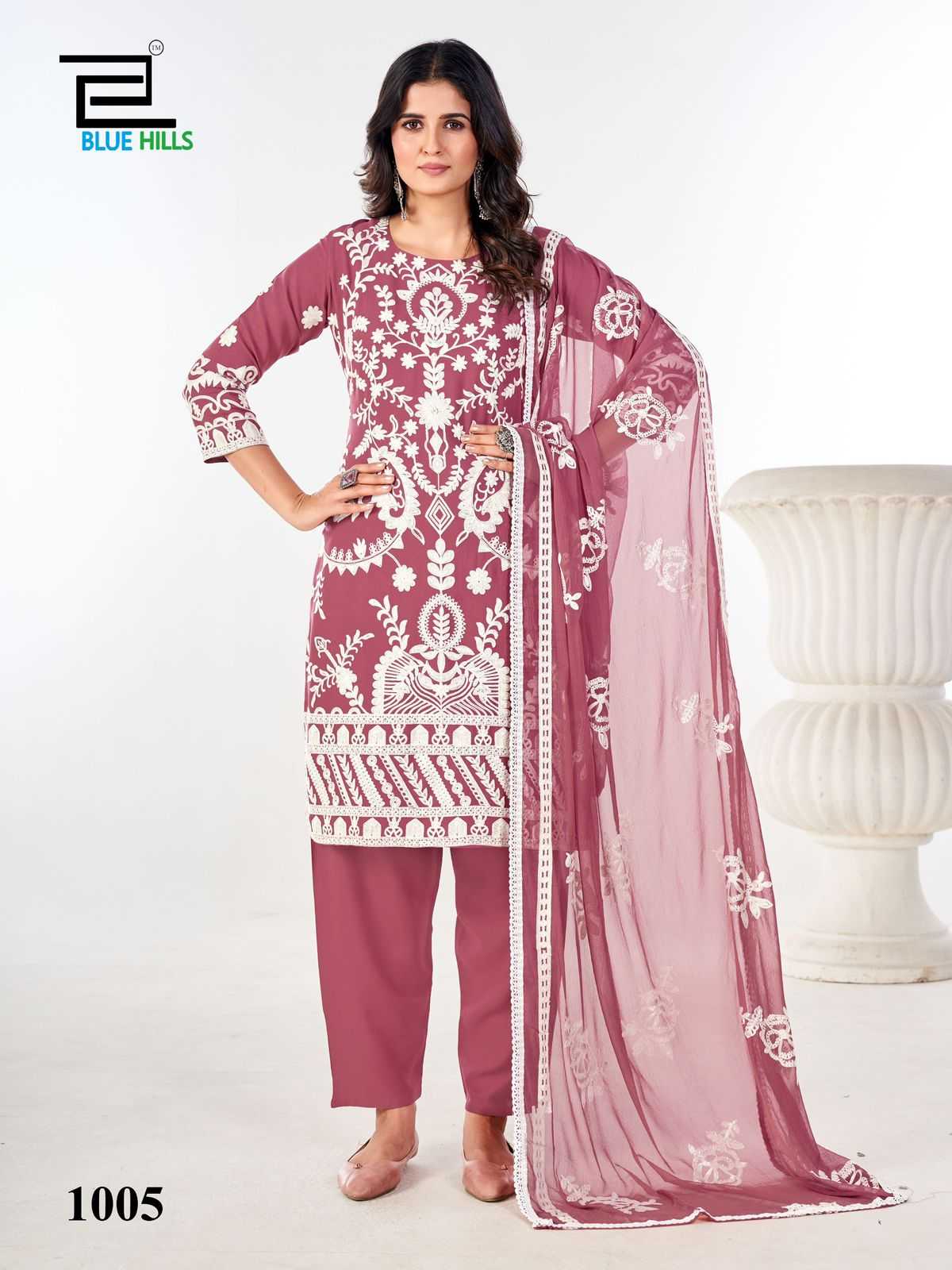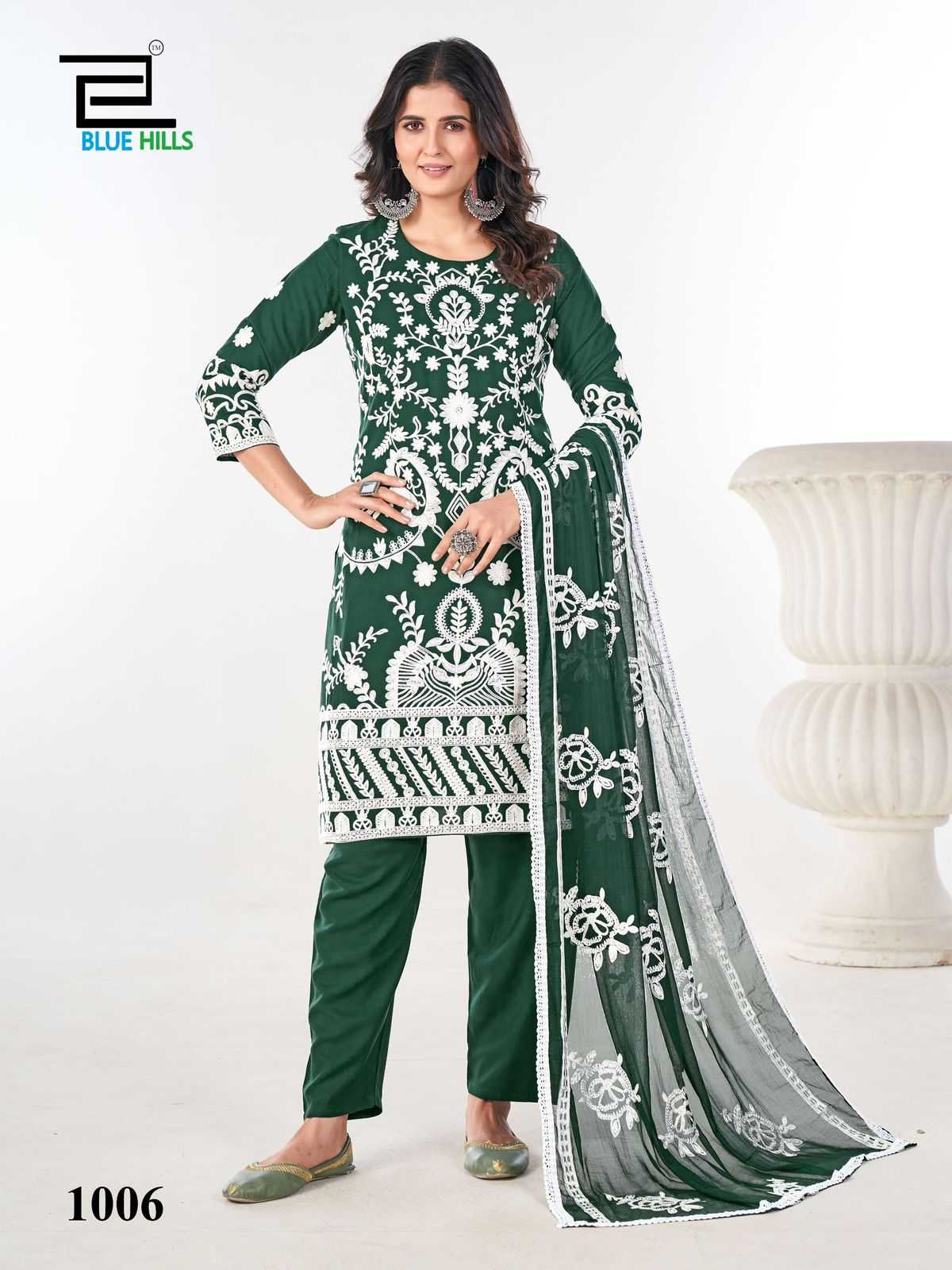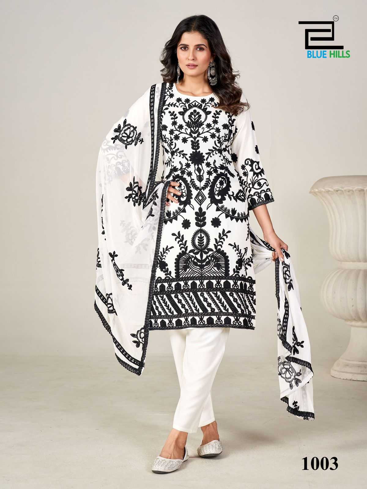 #Blue Hills SAHIBA Top + pant + dupatta Fabric : 14 kg rayon Heavy work Dupatta work heavy kurti side cut Top Length 40 Sizes. : M L XL XXL 3xl 4xl 5xl Rate - 850 + GST 6 pcs |