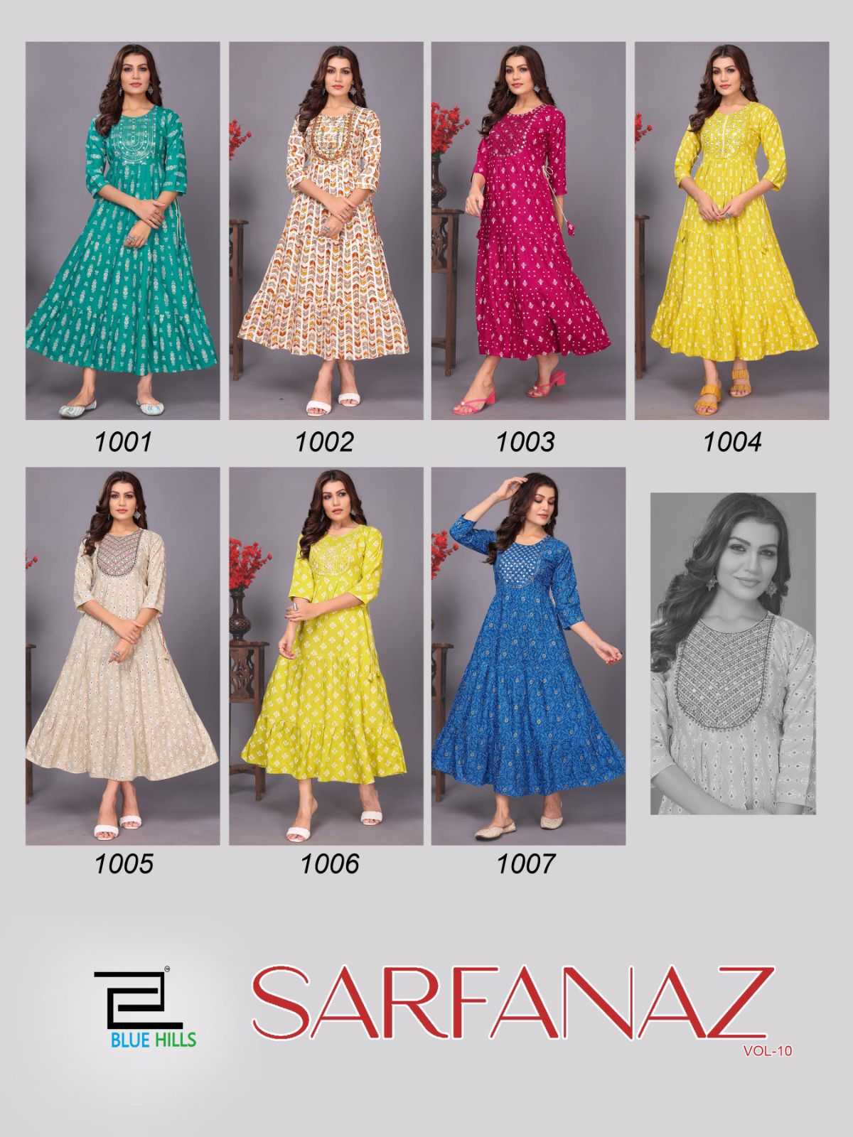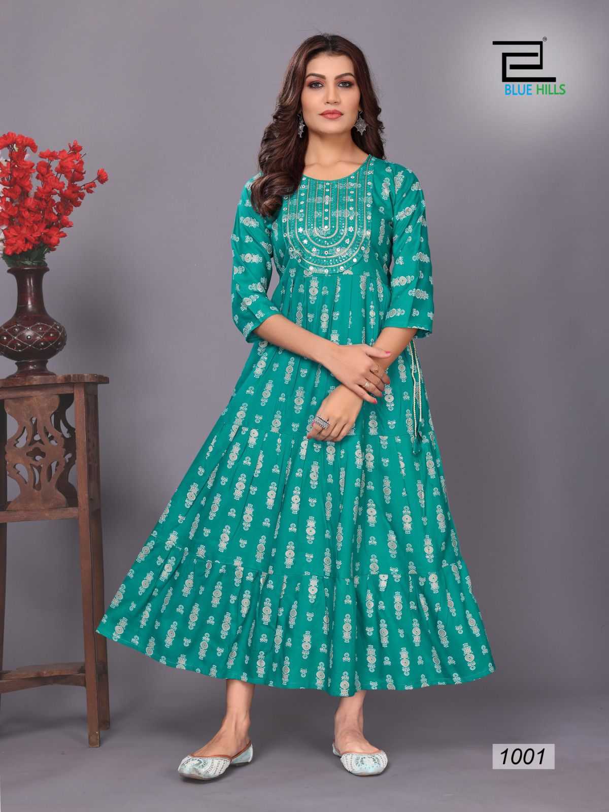blue hills sarfanaz vol 10 fancy stitch rayon flair kurti gown style in plus size
