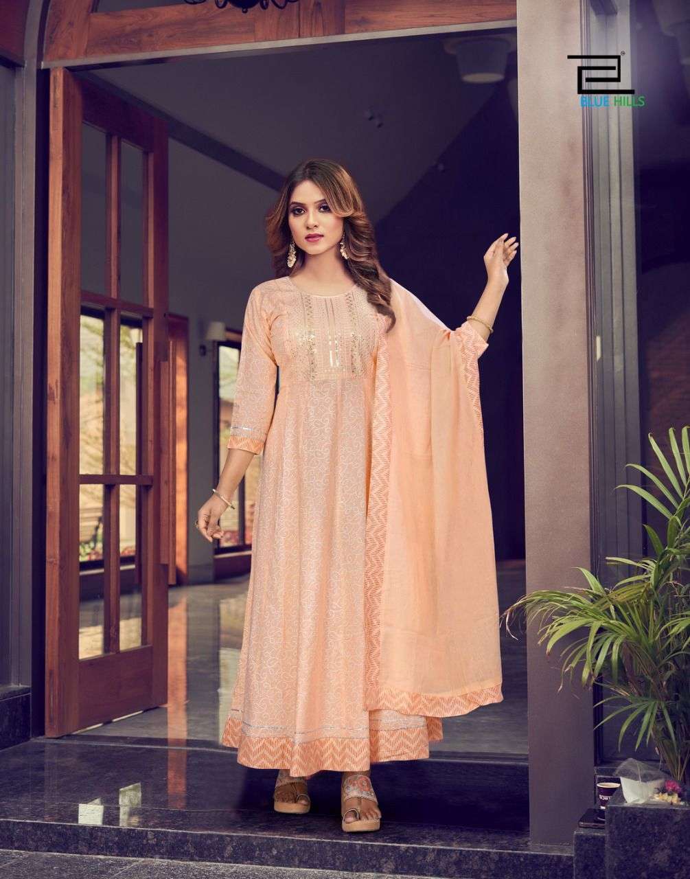 blue hills shades vol 1 cotton long gown with dupatta collection