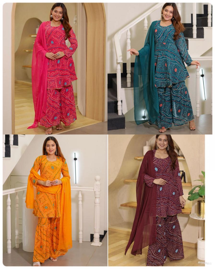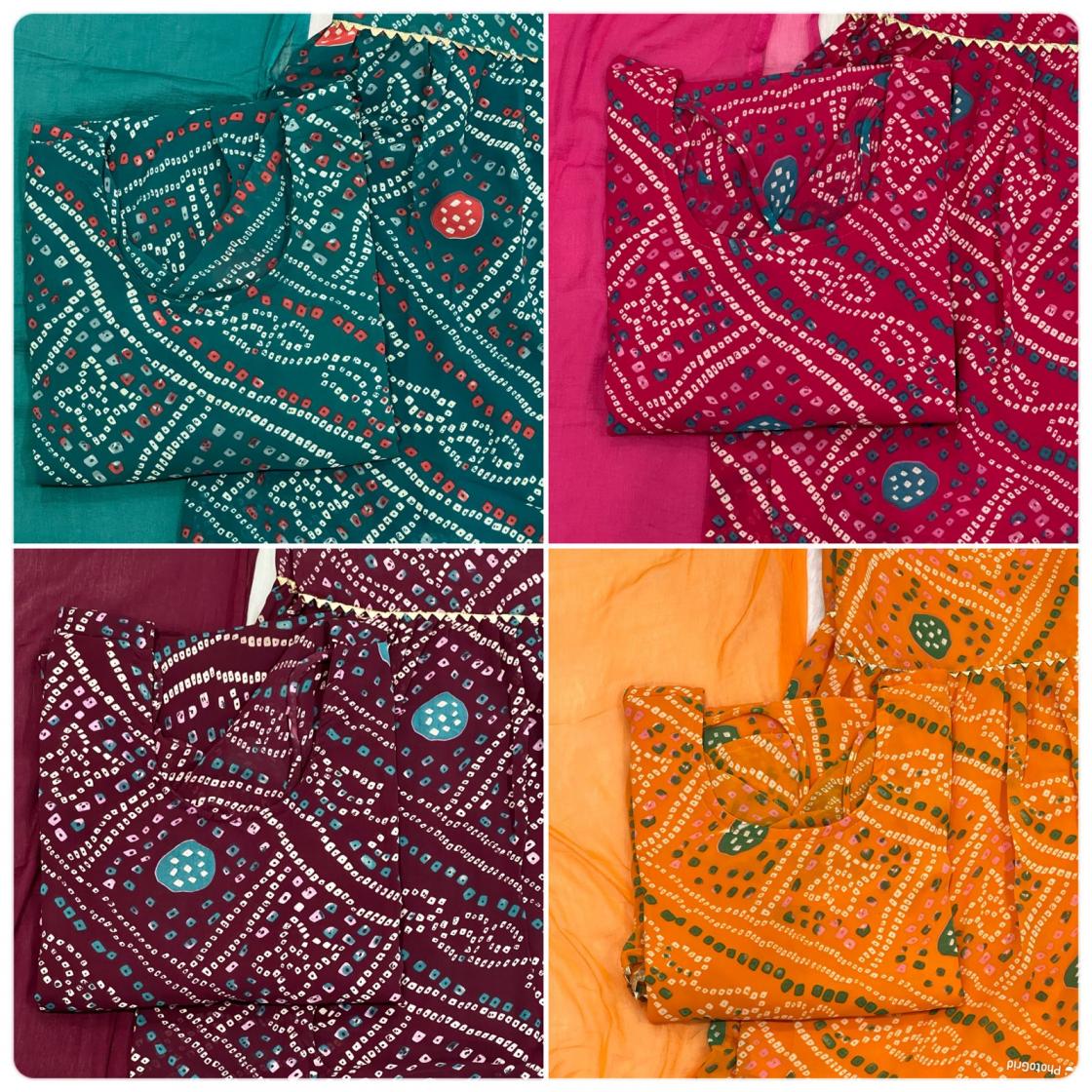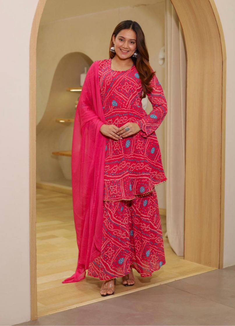 Festival Season 💃 Top-Bottom-Dupatta Ready to Wear Party Wear😊 Fabric Details: Top: Faux Georgette Print Sharara: Faux Georgette with Dupatta Nazmin(2.15 mtr) Inner top and sharara: Crepe Size: Length Rate: 950 rs |