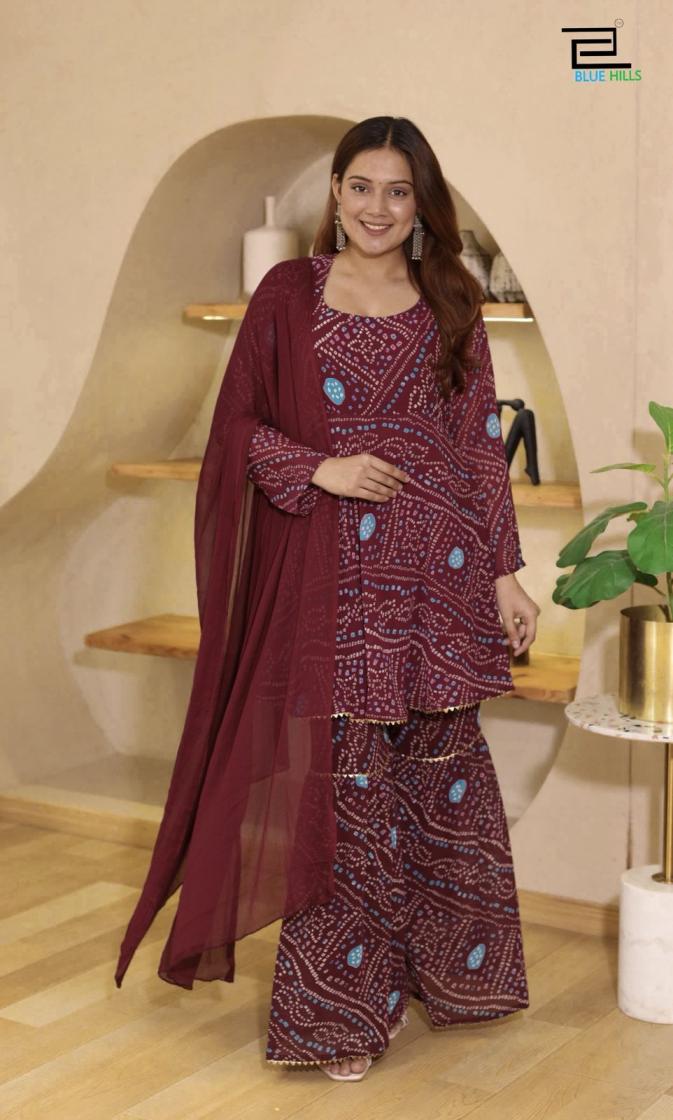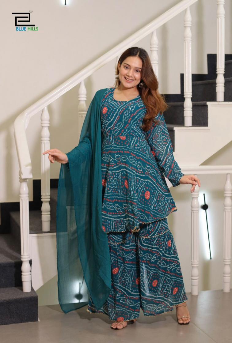 blue hills sharara special georgette print full stitch unique sharara style 3pcs dress