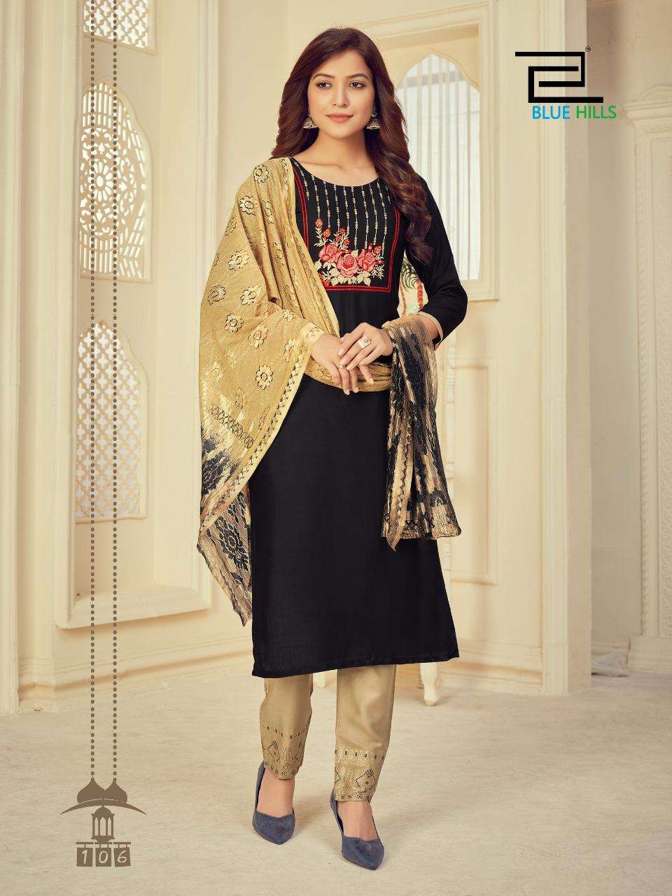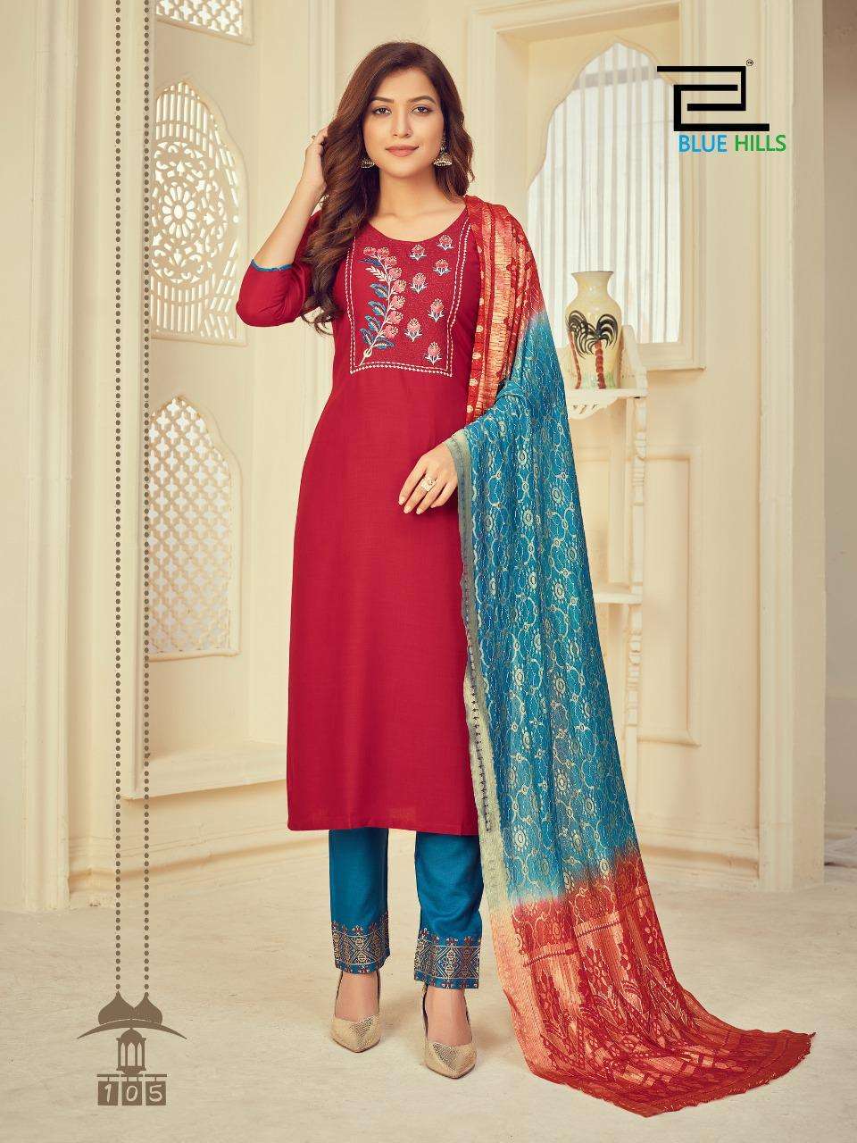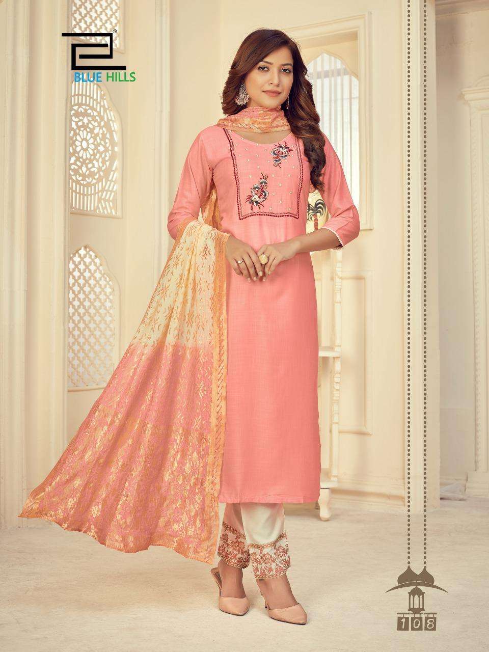 #BLUE HILLS Presents Skyline VOL 3 TOP- BOTTOM -DUPATTA TOP:-RAYON SLUB 14kg WITH Embroidery work Bottom - RAYON 14kg print DUPPATA - fancy duppata - 3PCS CONCEPT Size:- M (38 ) L (40 ) XL (42 ) XXL (44 ) 3XL ( 46 ) Rate - 650+GST Set to set 8 BEAUTIFUL DESIGNS  |