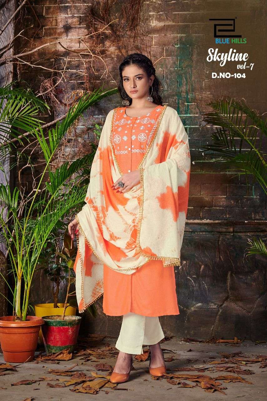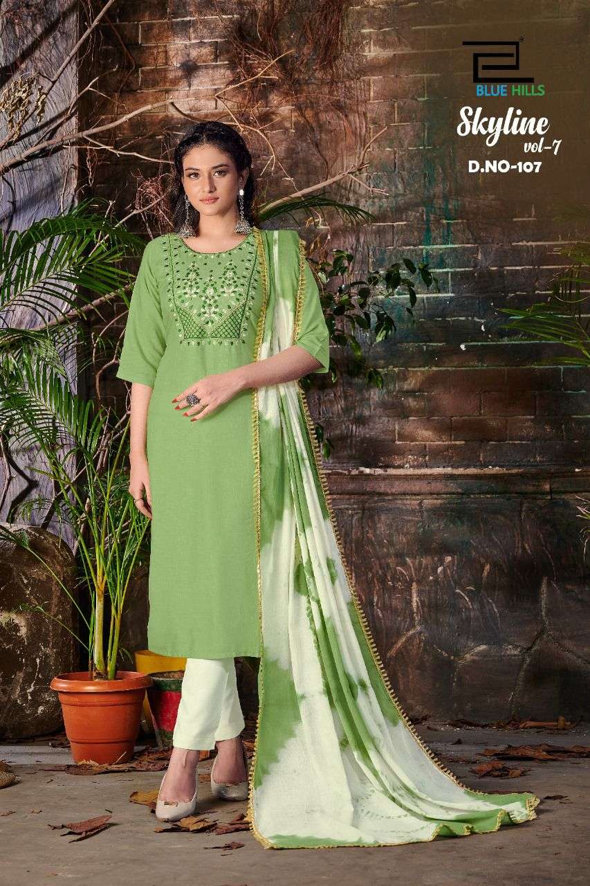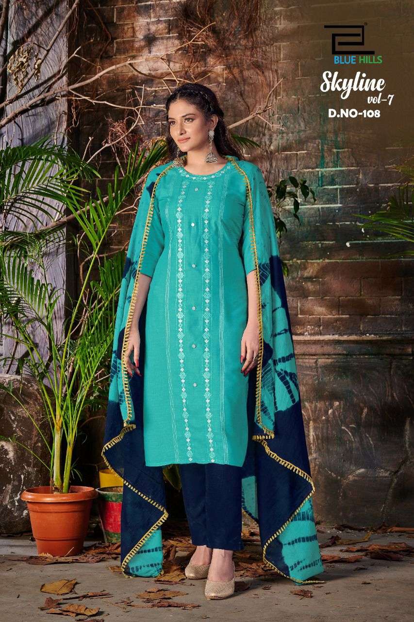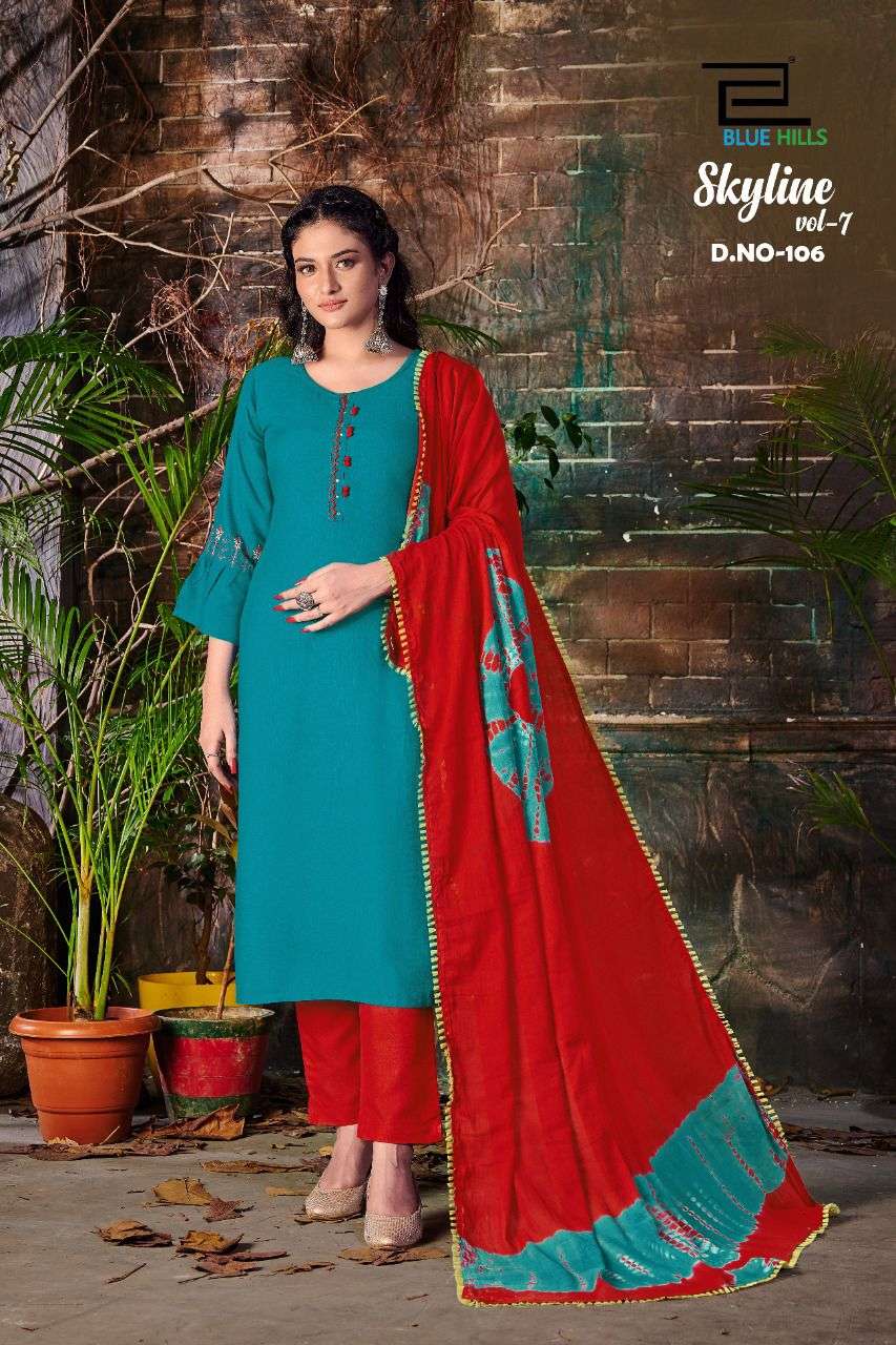 blue hills skyline vol 7 rayon top bottom with dupatta set