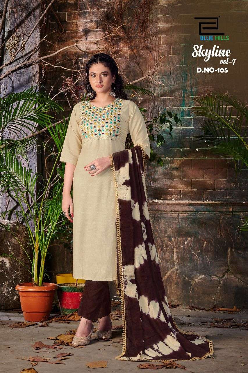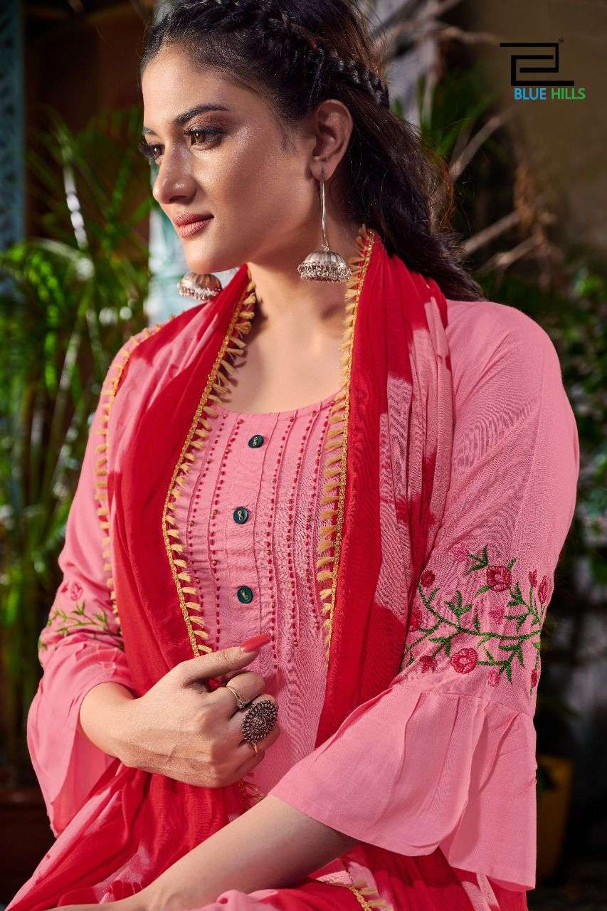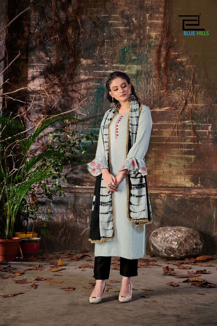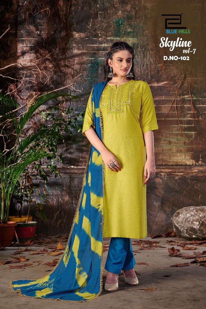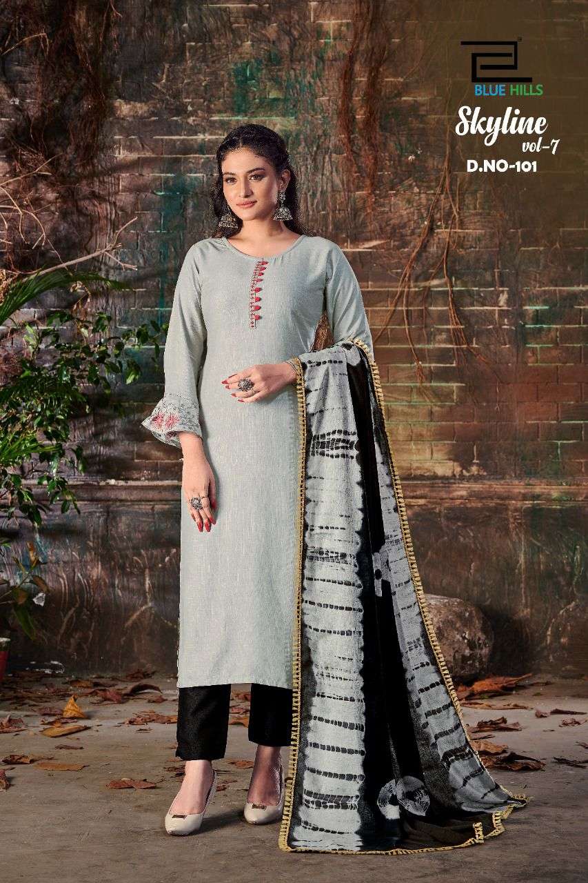 blue hills skyline vol 7 rayon top bottom with dupatta set