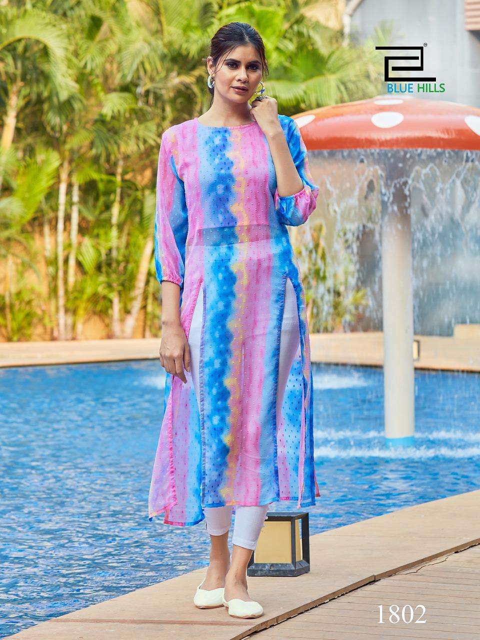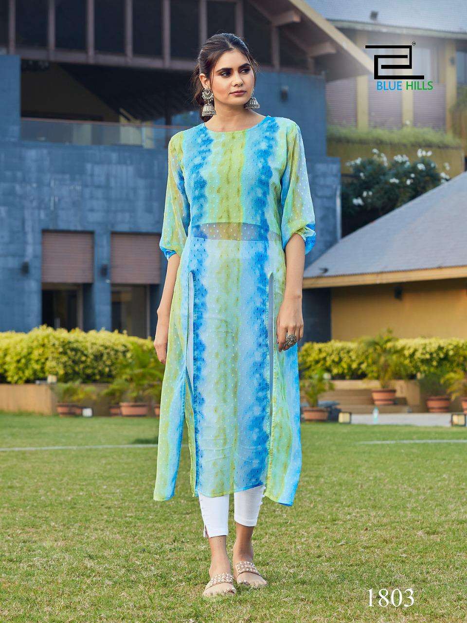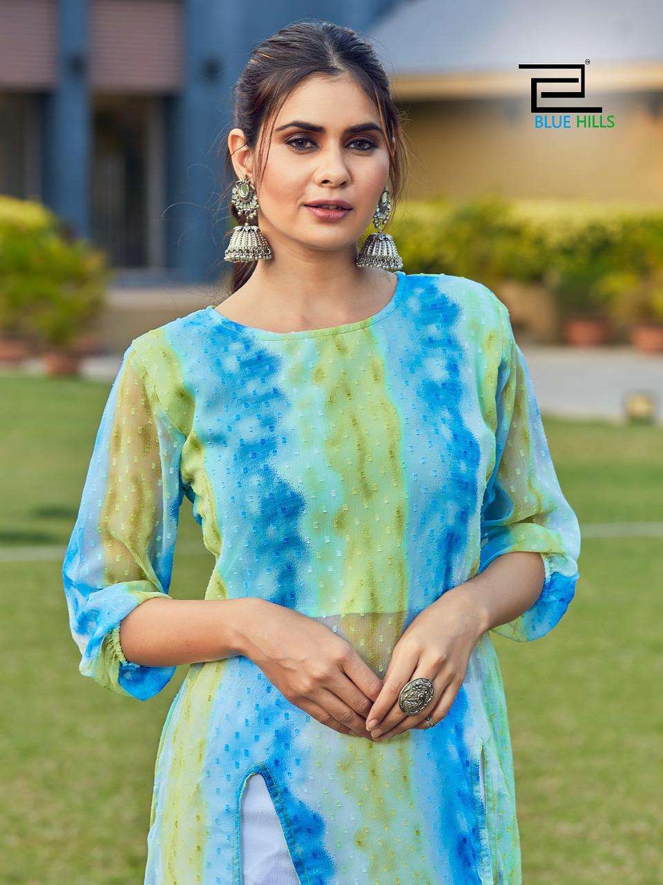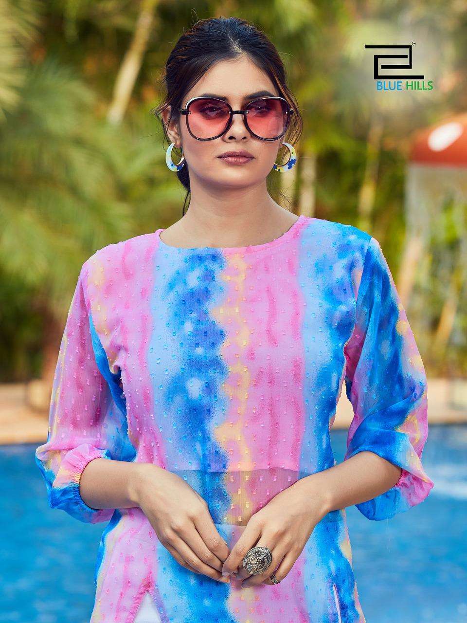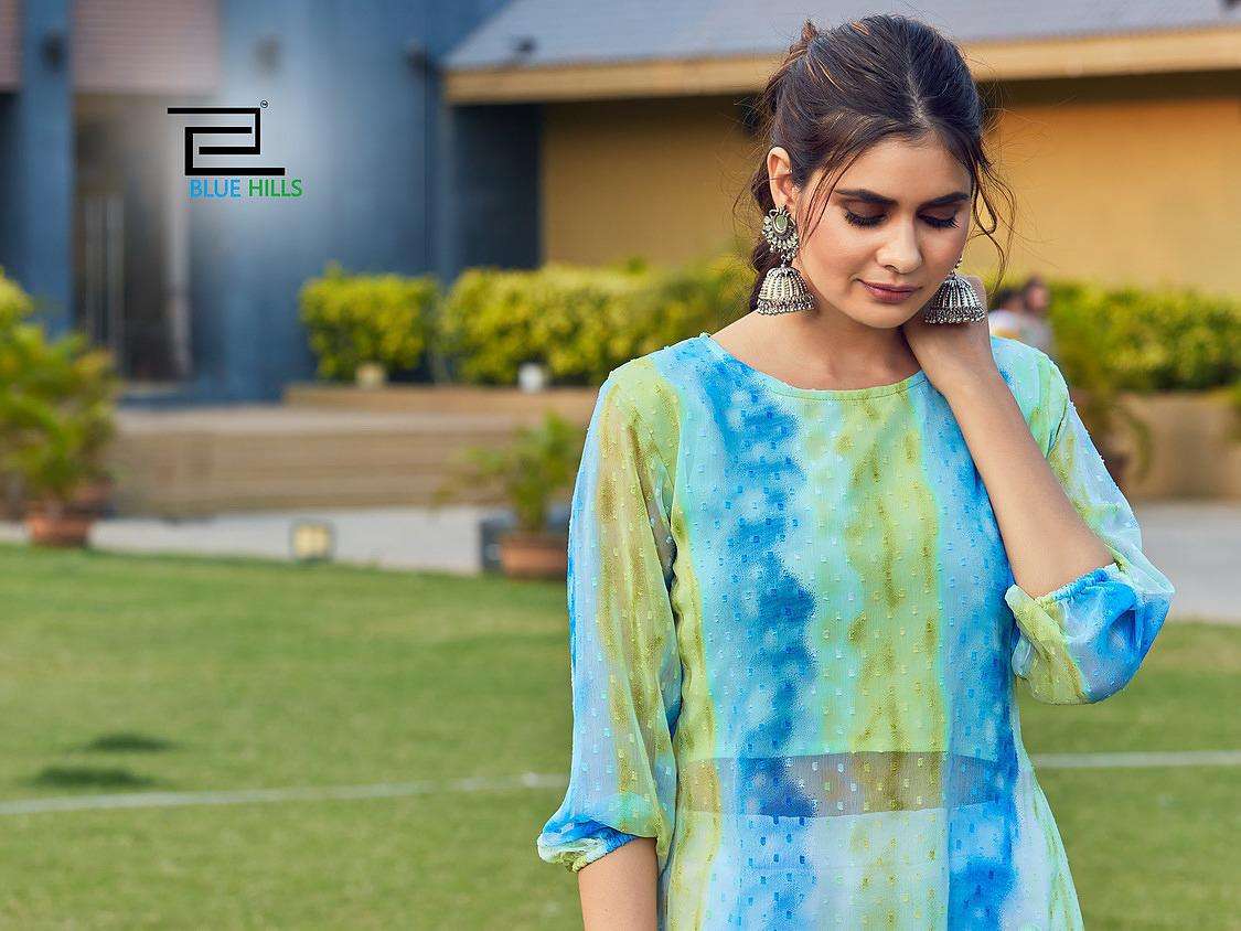 blue hills slit fancy georgette butti print kurti with inner pattern