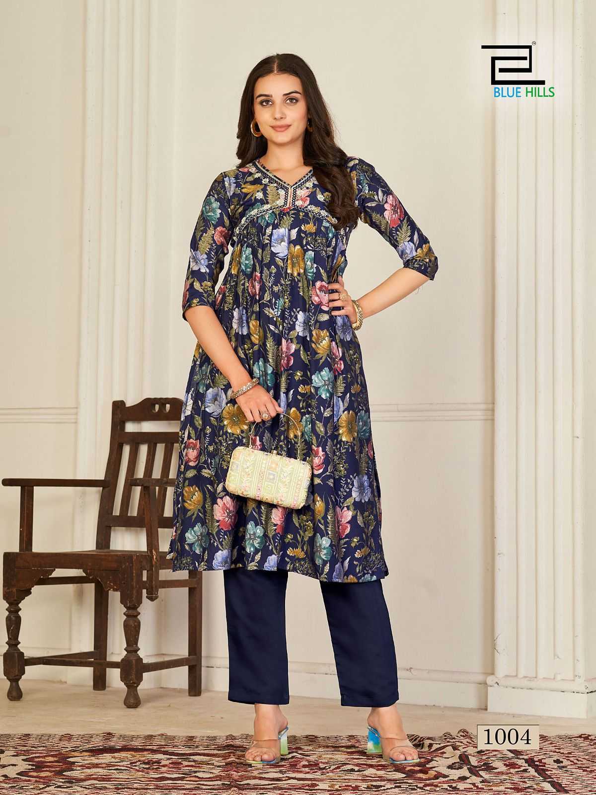 blue hills suhana readymade alia cut kurti pant set festive wear