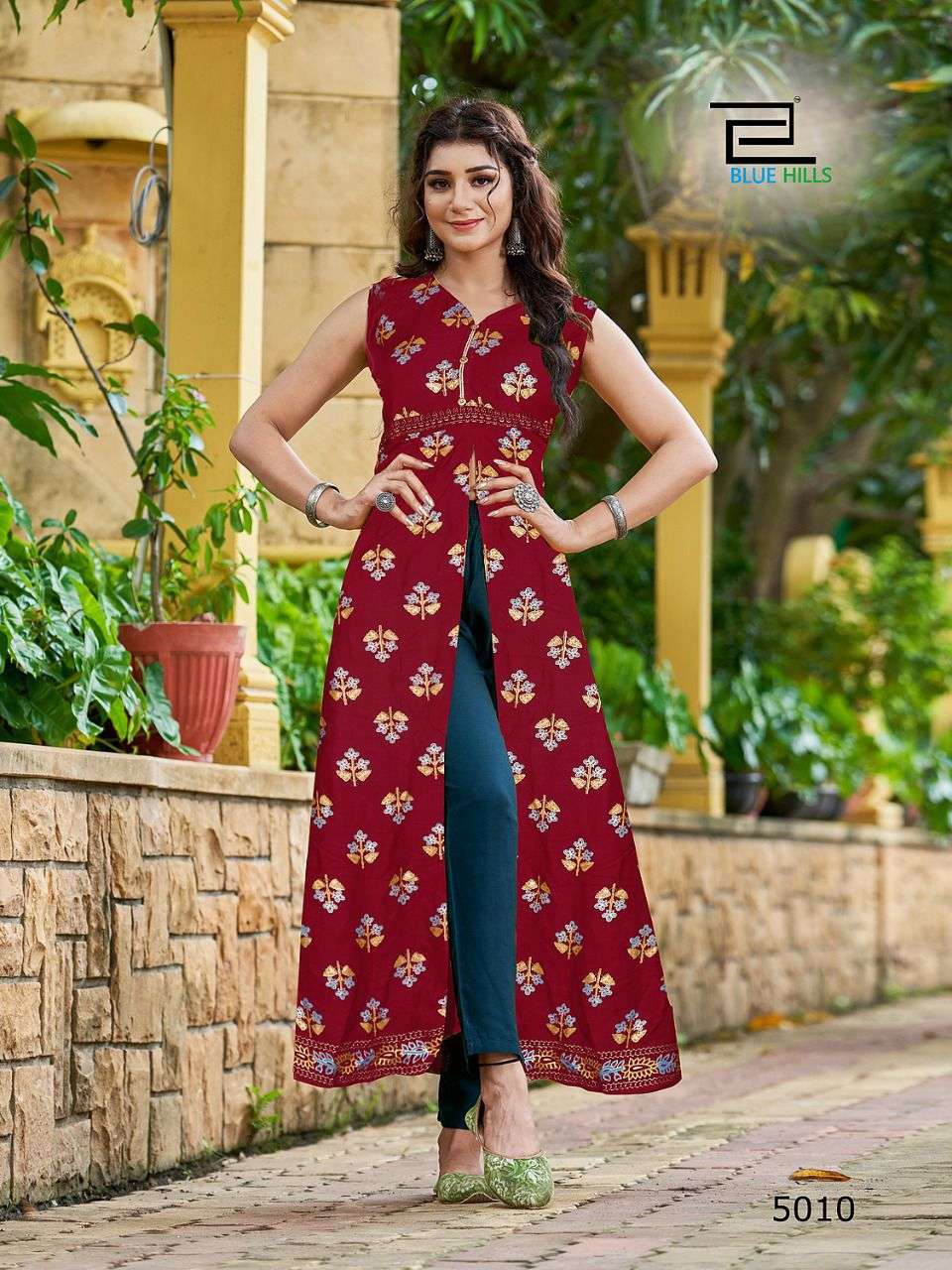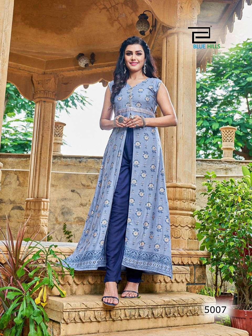 # BLUE HILLS (KURTI) - RAYON 14KG Foil print - Centre Cut Size - M (38) L (40) XL (42) XXL (44) 3XL (46) 4XL (48) 5XL (50) Rate - 475+GST - inside sleeve attach 10 DESIGNS CATALOGUE Dispatch - 2 to 3 |
