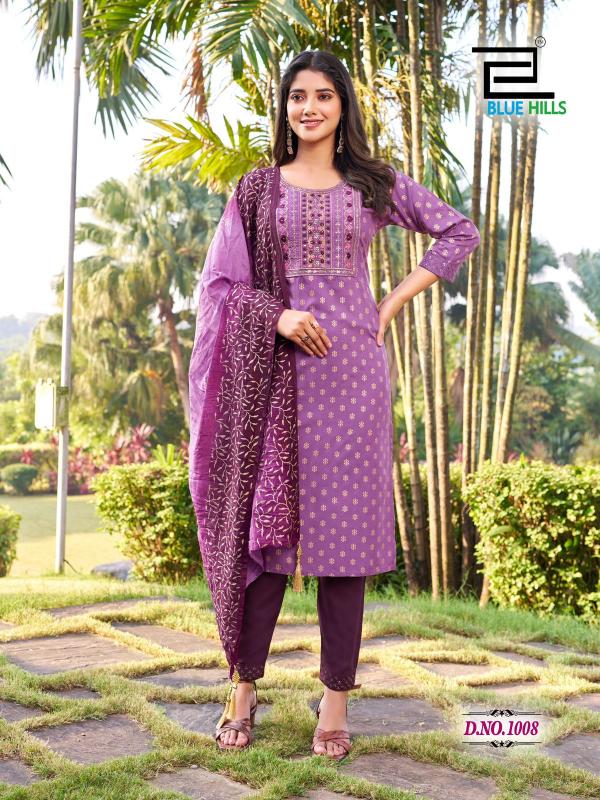 blue hills suva chanderi foil printed readymade plus size ladies suits