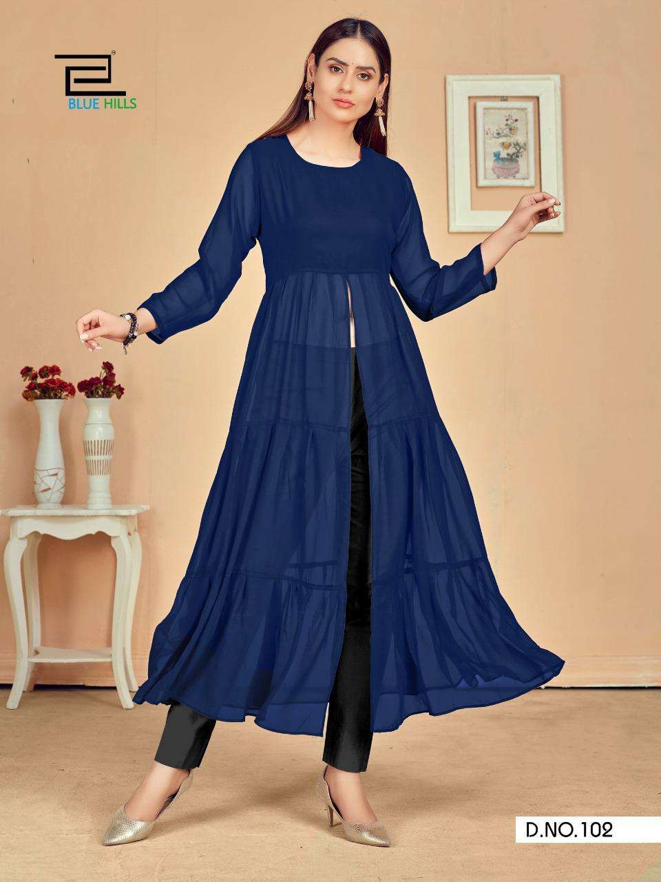 BLUE HILLS Presents TOKYO Rate - 350 +GST _Long Gown With Full sleeves And Centre cut Fabric:  Georgette  (With  half inner  ) - SIZE - S M L XL XXL - Length: 52â Set to set Dispatch 2 to 3 days |